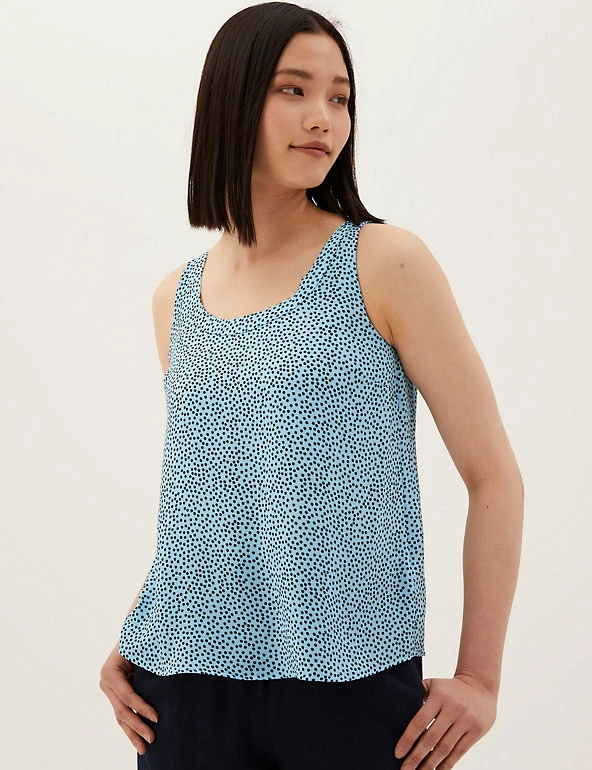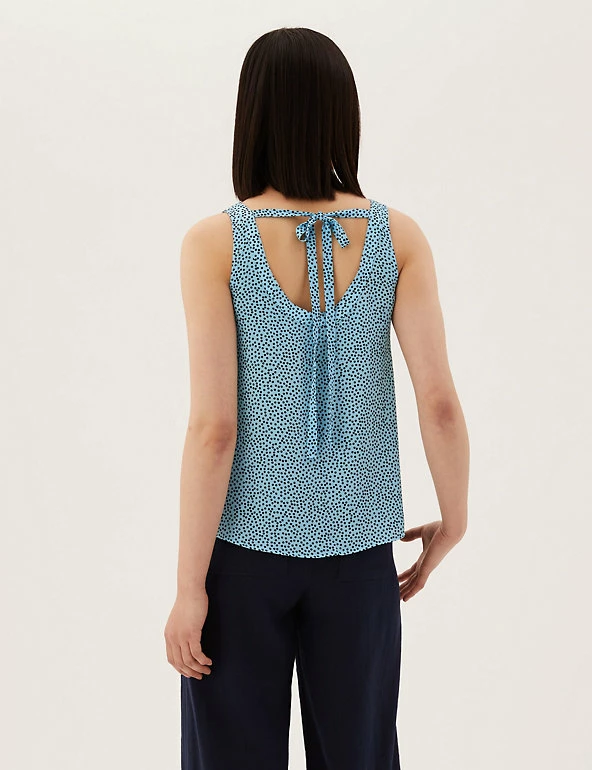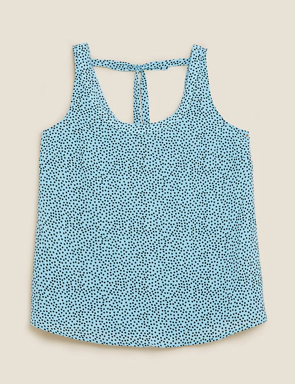 All-over polka dots give this cami top a playful pop. Classic sleeveless style, cut in a regular fit with an elegant tie fastening at the back of the neck for a dash of elegance.