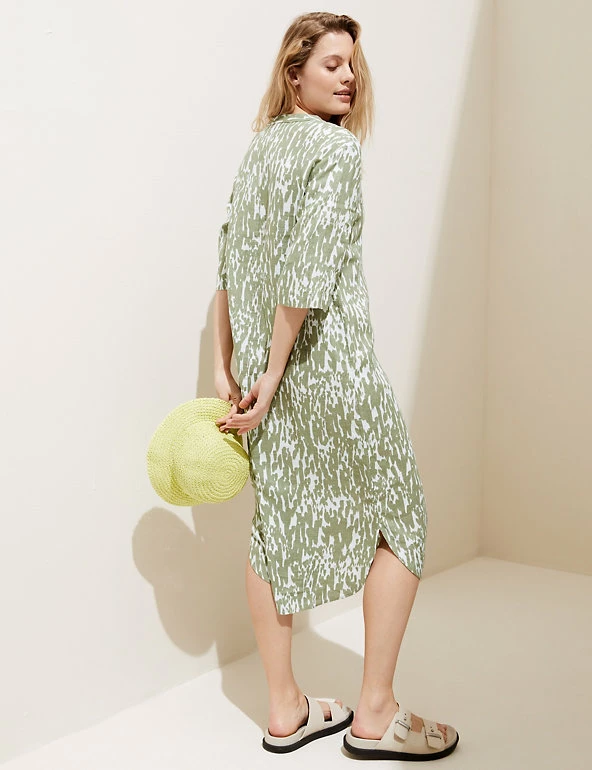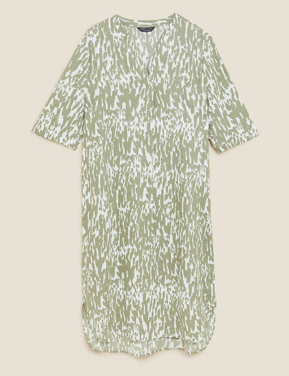 Pure linen gives this midi tunic a lightweight and breathable feel. It’s cut in a regular fit with airy 3/4 length sleeves and a neat v-neck. An all-over abstract print creates a striking effect, while splits on each side of the curved hem offer easy movement.