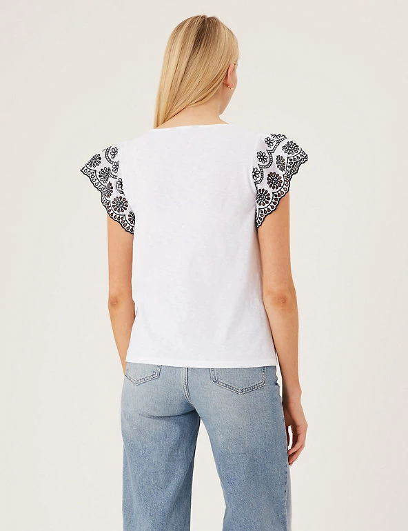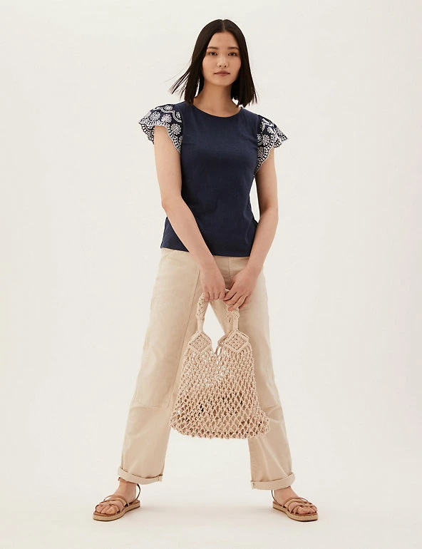 Breathable pure cotton and intricate embroidery give this sleeveless vest a sophisticated summer look. Straight fit, with a crew neck for easy wear. We only ever use responsibly sourced cotton for our clothes.