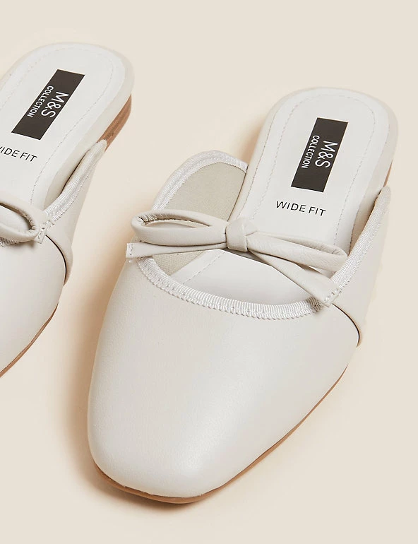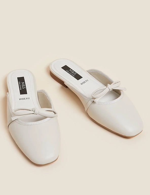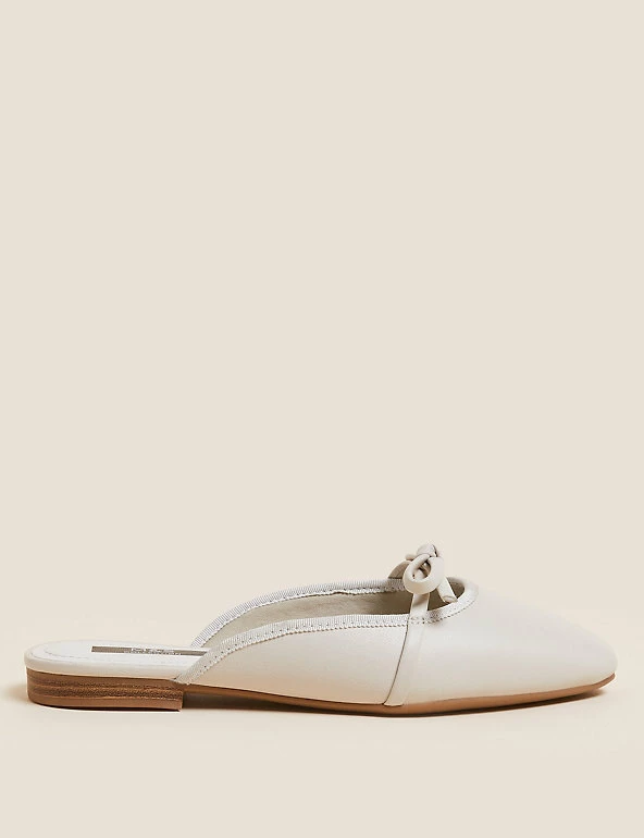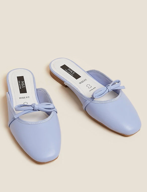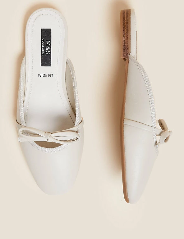 Complete your laid-back look with these leather mule slippers. They come in a comfy wide fit with a neat bow at the top. Insolia Flexยฎ technology ensures correct foot placement to make walking in flats more comfortable. Antibacterial padding keeps them fresh. Made with responsibly sourced leather.