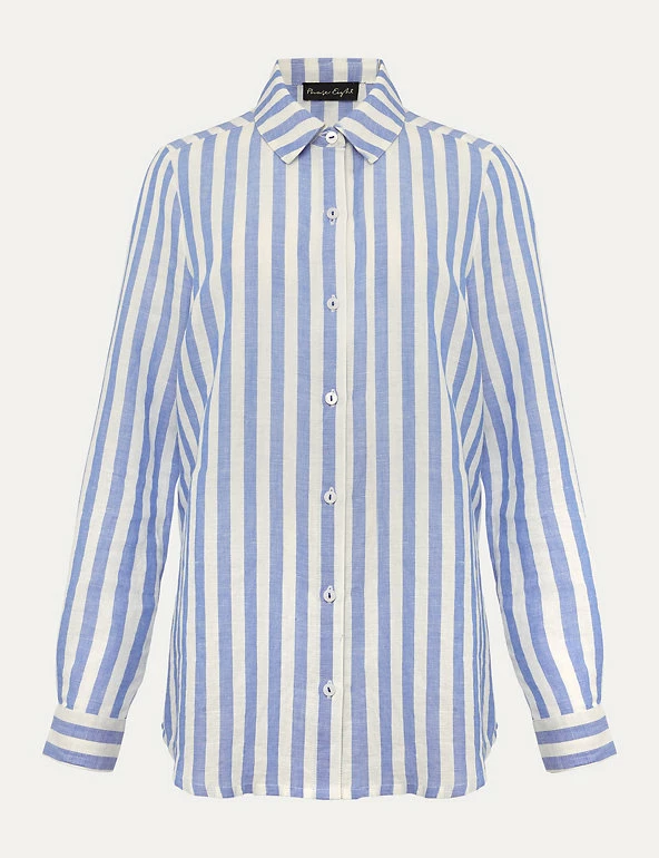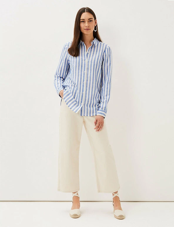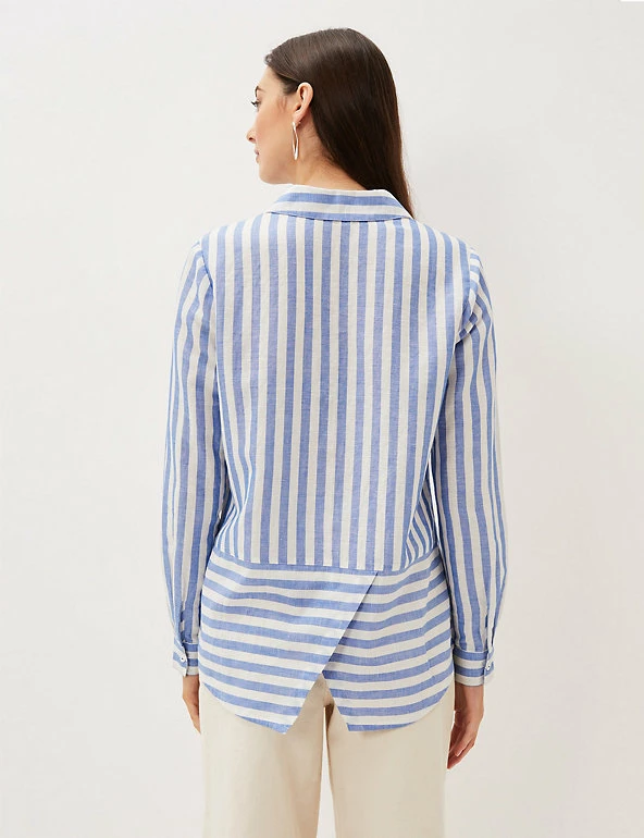 This classic striped shirt by Phase Eight is given a surprise twist with a wrap-over hem at the back. Made from breezy pure linen in a regular fit, the shirt features a smart collar neckline and button-through front. Buttoned sleeve cuffs add a further tailored touch to this versatile piece.