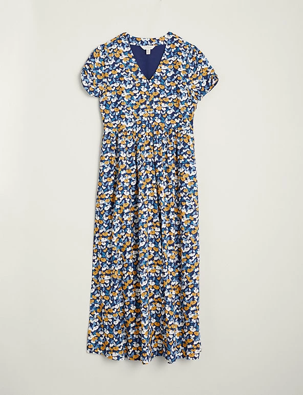 Show up to occasions looking floral and flawless in this printed cotton-rich tea dress by Seasalt Cornwall. Designed in a regular fit, this chic piece features a flattering v-neck and falls to a modern midaxi length. It’s finished with delicate gathering along the skirt for extra femininity.