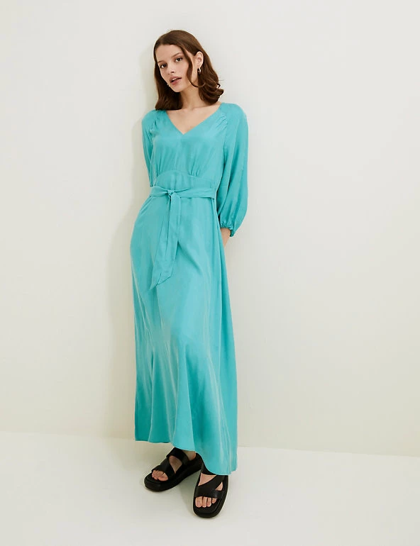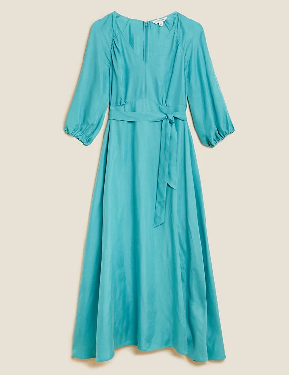 When you need a showstopping dress, reach for this cupro-rich midi piece from our Autograph range. It’s cut in a regular fit with a flattering empire waistline and cinching self-tie belt for elegant shaping. Long sleeves and a v-neck accentuate the elegant design.
