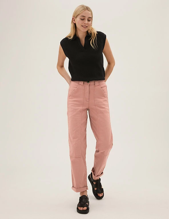 Straight leg, Button and zip fastening, Unlined, High waisted, Added Stretch