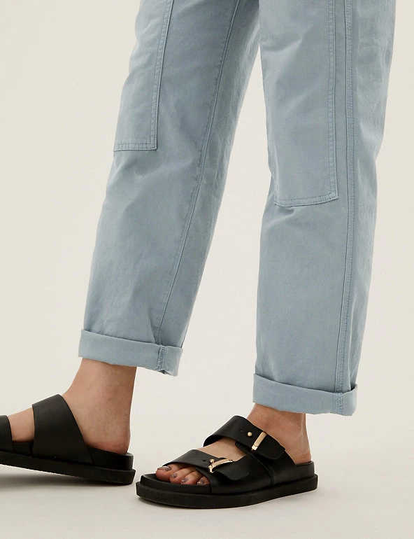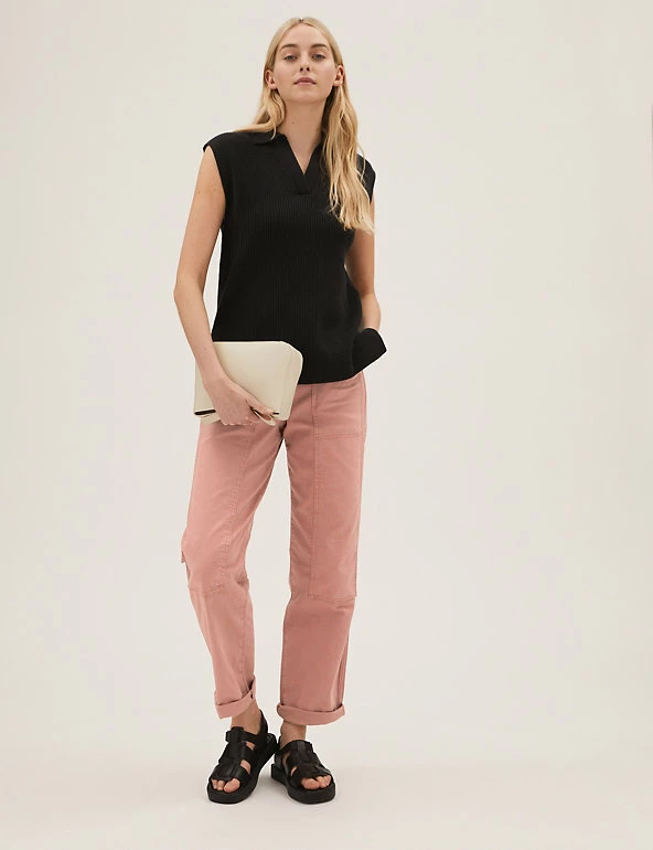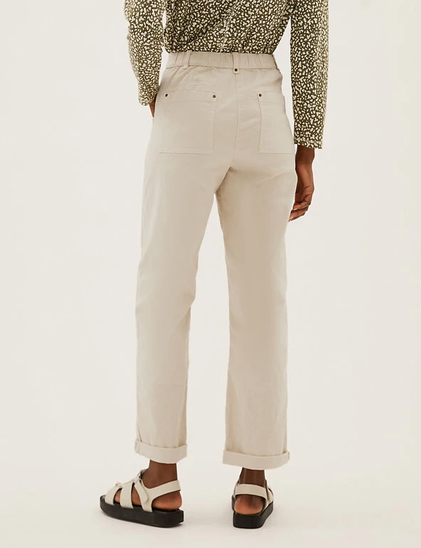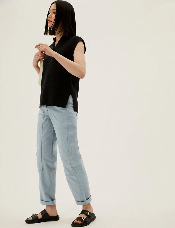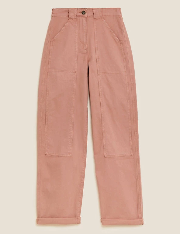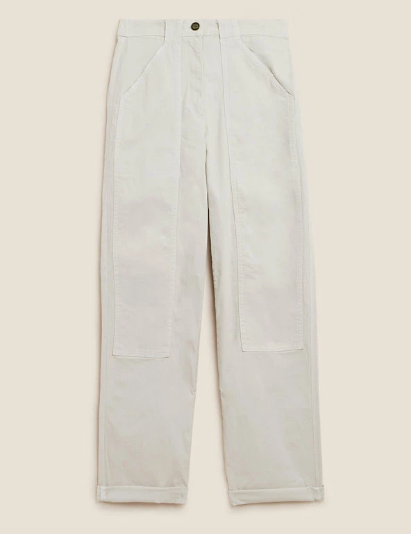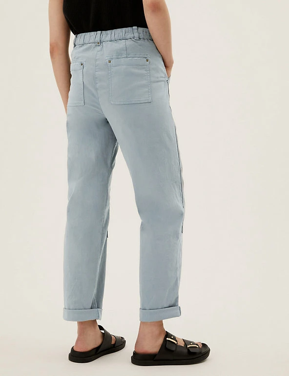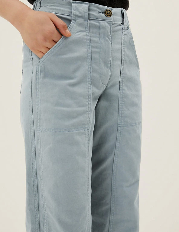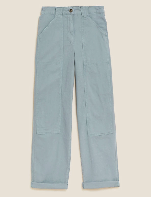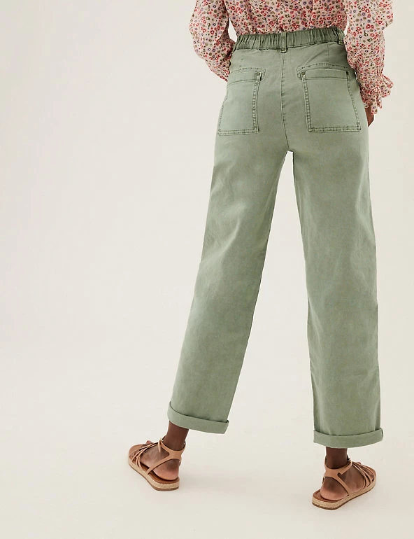 Complete your laid-back look with these relaxed straight, garment washed trousers this summer. Designed with a nod to the latest utility trend, these easy to wear trousers feature an elasticated back waist, laid on leg panels that double up as pockets, twin needle detailing throughout, back pockets and rivets.