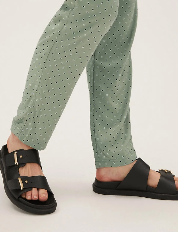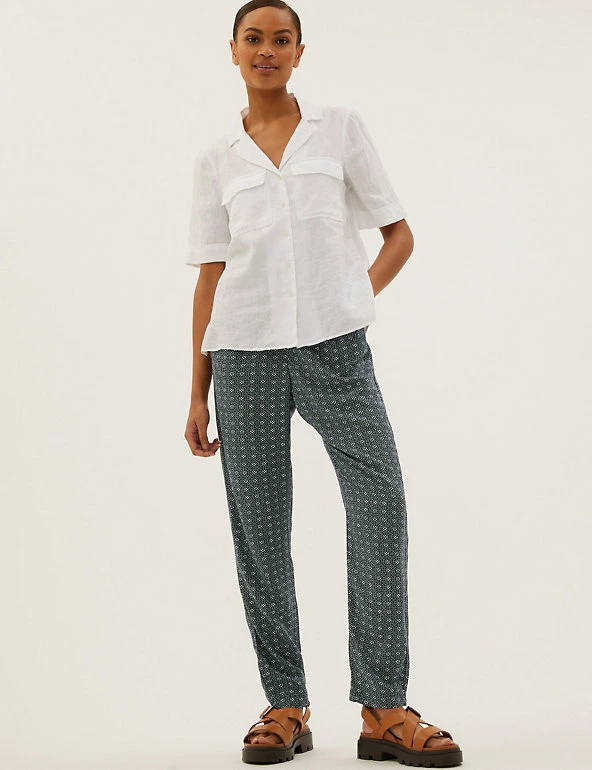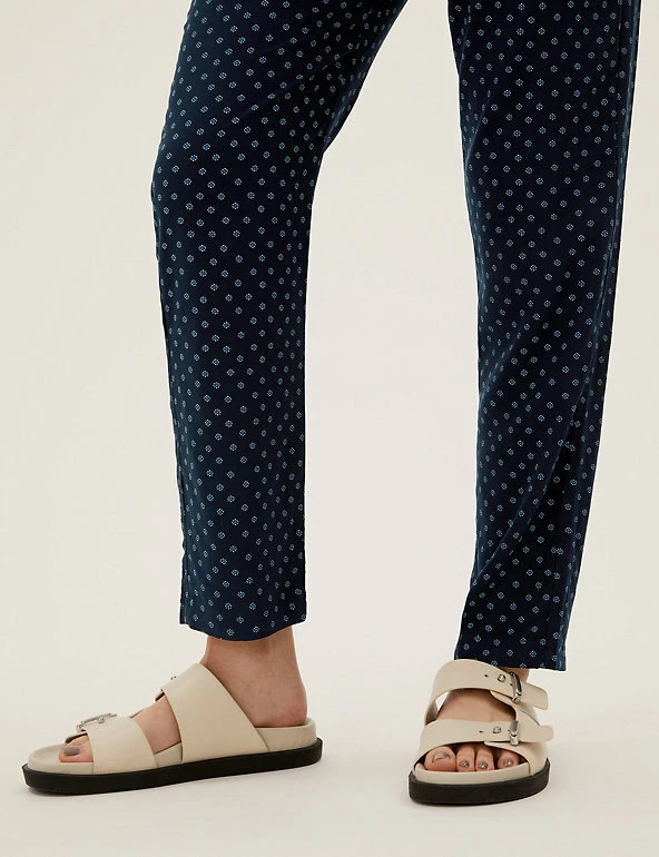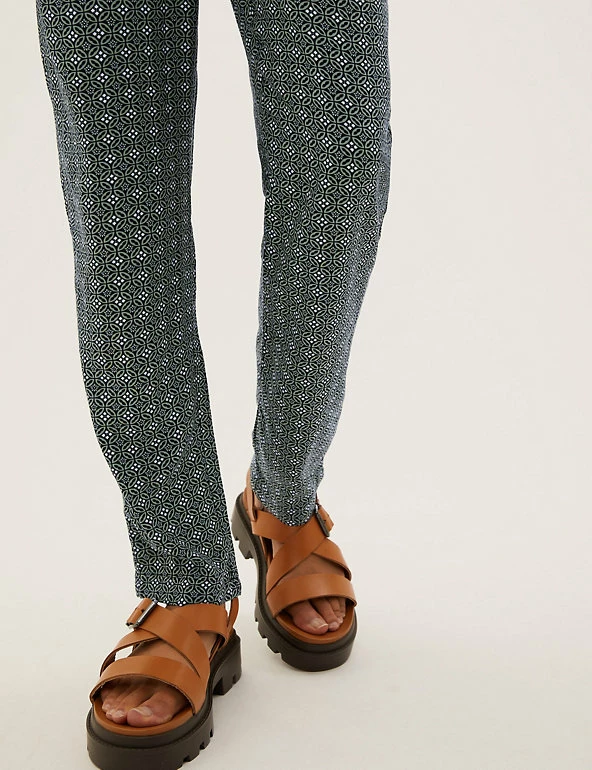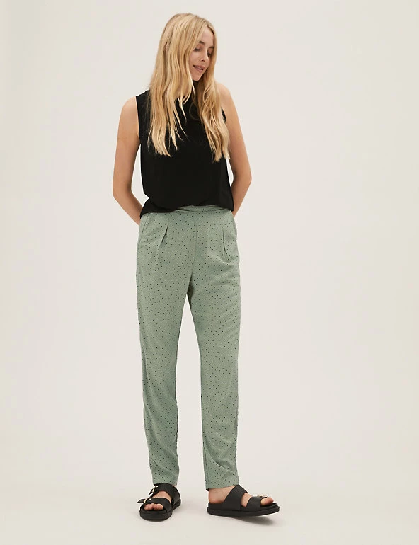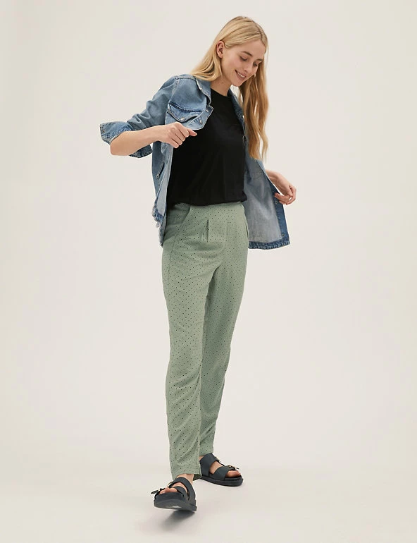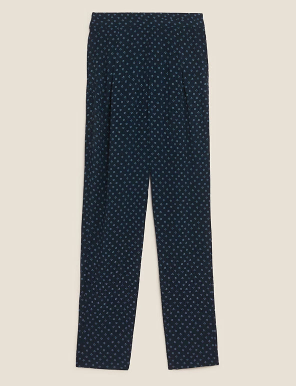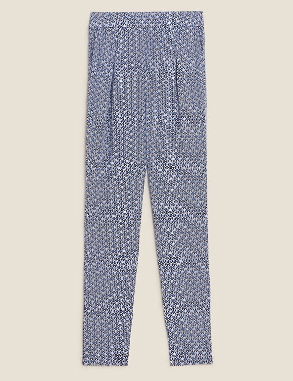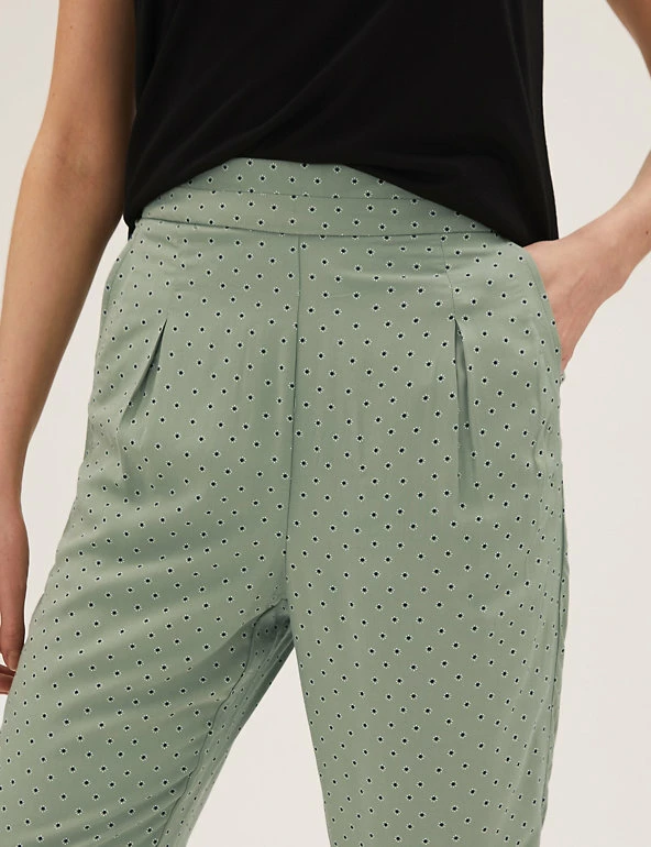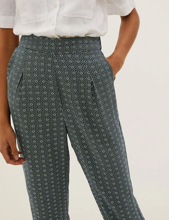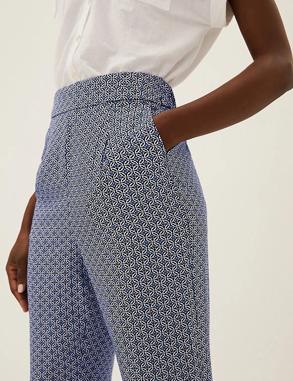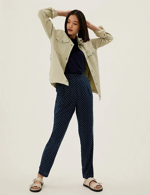Let the good times roll in these vibrant printed trousers. Flattering tapered fit, with an elasticated section at the back of the high waist for a flattering shape. Pockets in the seams for essentials. Finished with a stylish ankle-grazing length.
