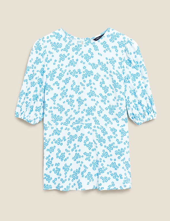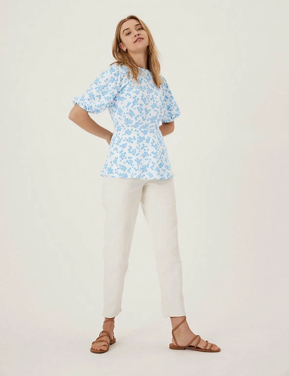 Add a playful print to your ensemble with this floral top. It’s cut in a regular fit with a flattering empire waist and short puff sleeves for a touch of volume.