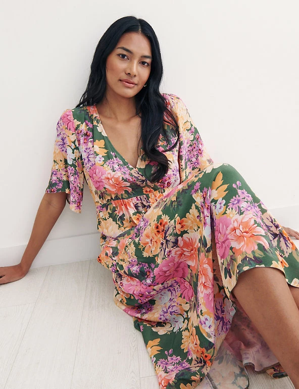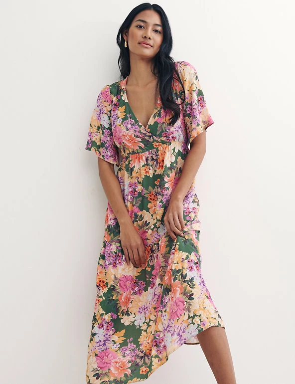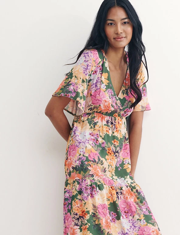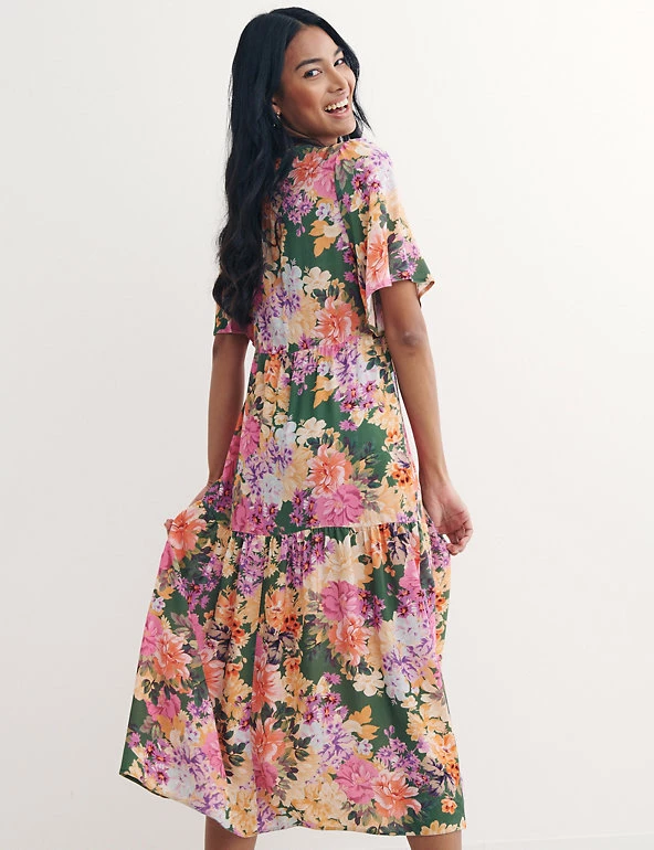 This vibrant floral smock dress by Nobody’s Child will become your go-to brunch outfit. Cut to a roomy relaxed fit, this chic piece drops to an elegant midi length and features a flattering v-neck. It’s finished with contemporary tiered detailing, pretty gathering at the waist and a stylish mock-wrap design. Made with sustainably sourced viscose.