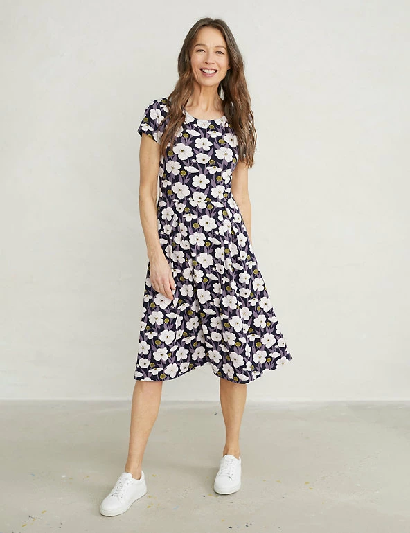 A vibrant floral print adds a playful touch to this waisted dress from Seasalt Cornwall. Cut to a comfy regular fit, it’s designed in a flattering fit-and-flare shape with a versatile knee-length hem. Short cap sleeves and a scoop neckline complete the look.