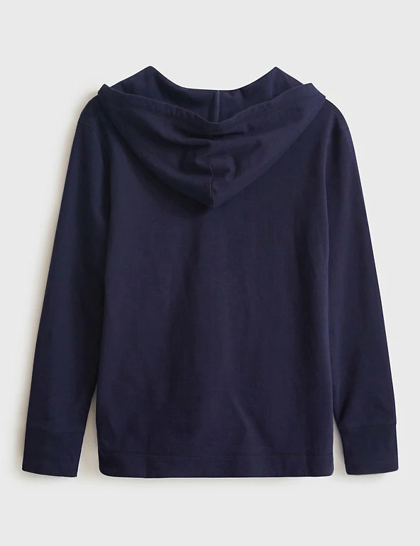 This pure cotton sweatshirts from White Stuff makes a welcome extra layer on cooler days. It’s cut in a comfortable regular fit, with a feminine v-neckline and a dropped hemline that ensures a casual feel. Contrast stitching and a colour-pop lining at the back hem add subtle finishing detail. A generous kangaroo pocket at the front gives room for your essentials.