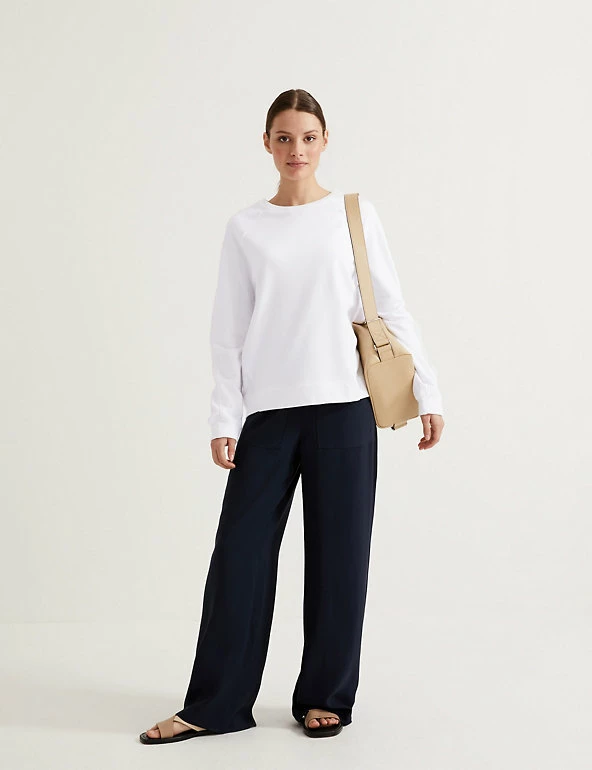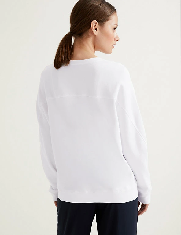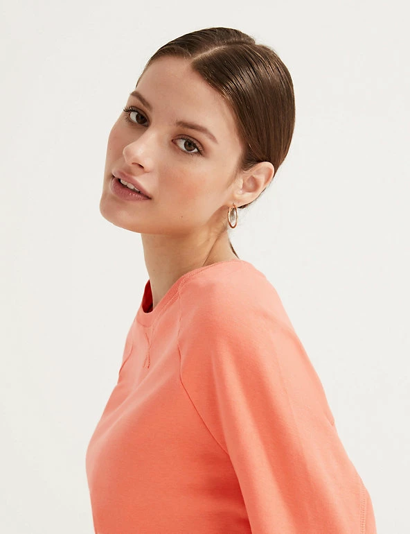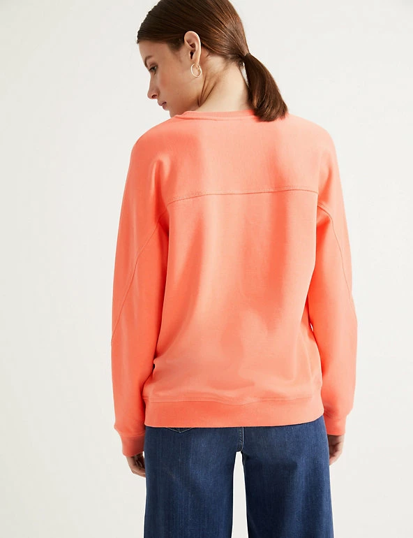 Bring a bright pop to a cosy day with this cotton-rich sweatshirt from our Autograph collection. It has a regular fit, with a round neck and seam detailing at the shoulders for a casual effect. The long sleeves with ribbed cuffs and hem lock in heat. We only ever use responsibly sourced cotton for our clothes. Autograph: premium investment pieces featuring contemporary cuts and refined finishing touches.