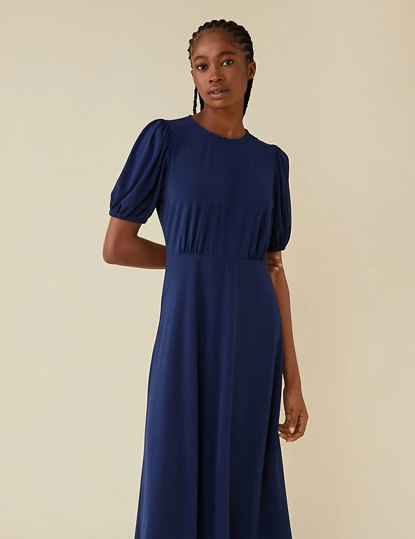 This sleek and simple tea dress from Finery London makes a big impact. Cut to a regular fit, it features short puff sleeves and flattering waisted detailing. This piece has an on-trend midi hem and fastens with a keyhole button fastening at the back.