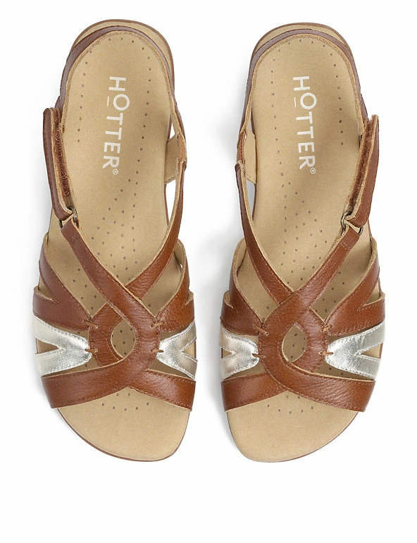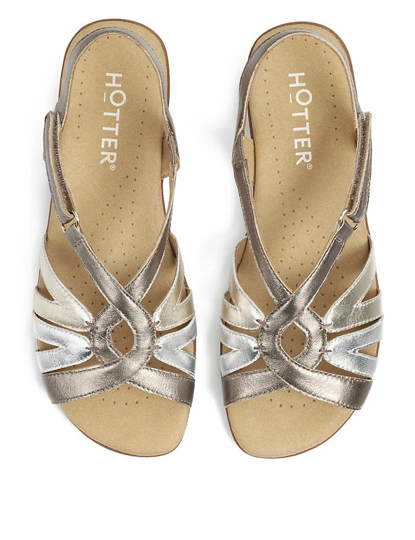 These leather gladiator sandals from Hotter will add a pop of metallic glamour to your look. They’re crafted in a comfortable regular fit, with a low wedge heel and supportive slingback strap. An elasticated touch-close fastening makes them easy to get on and off.
