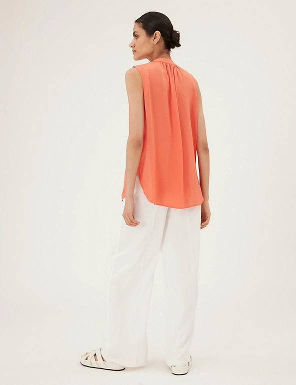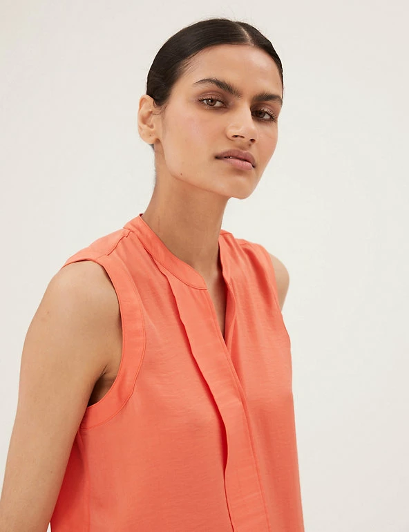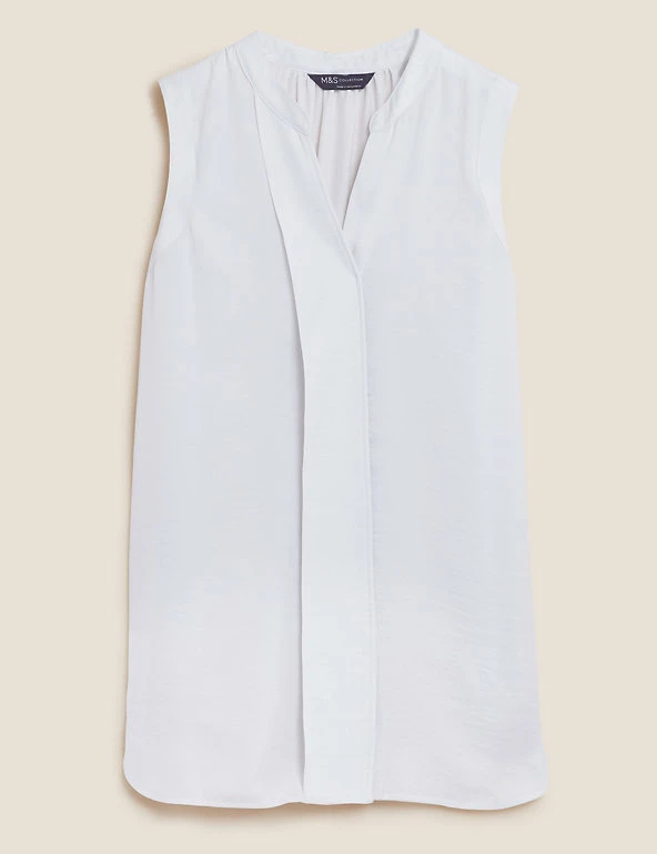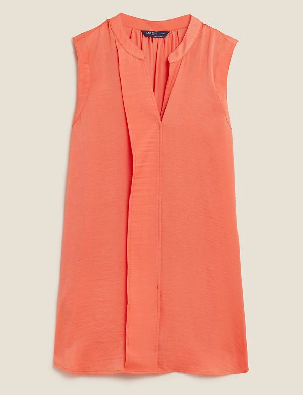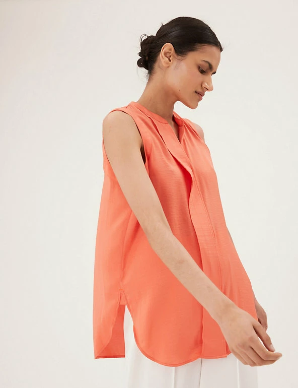 Smart and lightweight, this longline popover blouse is a summer staple. Regular fit, designed in a breezy sleeveless style with an elegant v-neck. Panel detailing down the front for an added flourish.