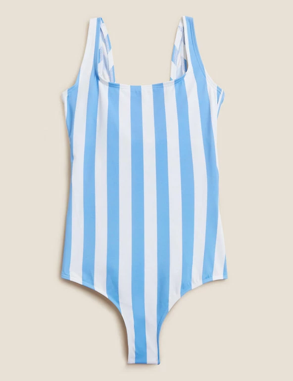 Bring a playful look to the pool with this striped swimsuit. Regular fit, with a flattering scoop neck and a full lining. Padded, non-wired design with added stretch for comfort. Smart StayNew™ chlorine-resistant fabric keeps it looking like new for longer.