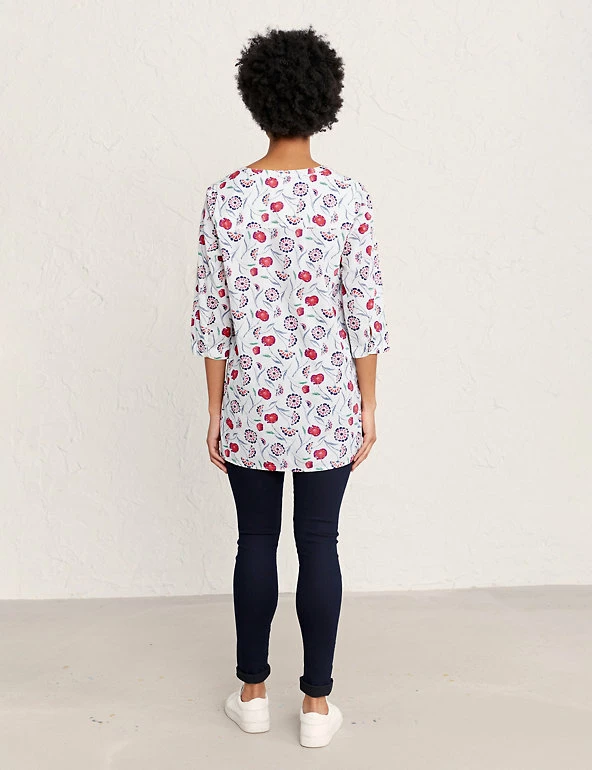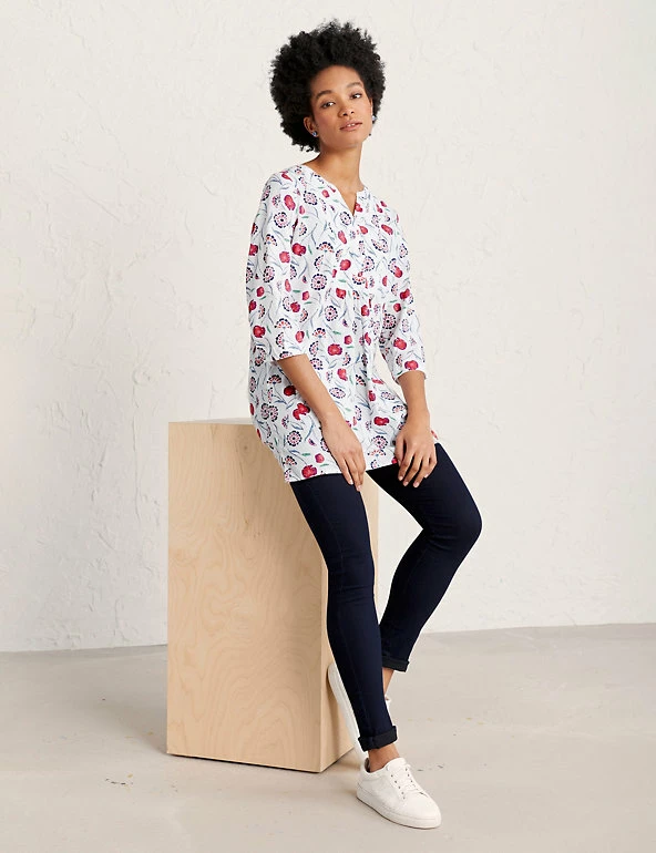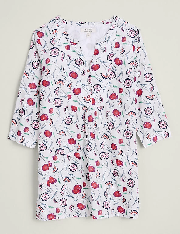 With its pure organic cotton material and fresh floral print, this Seasalt Cornwall tunic is a perfect summer outfit. Cut to a regular fit from crisp voile fabric, it has flattering 3/4 length sleeves and a notch v-neckline. Two handy front patch pockets make for practical additions. Made with organic cotton.