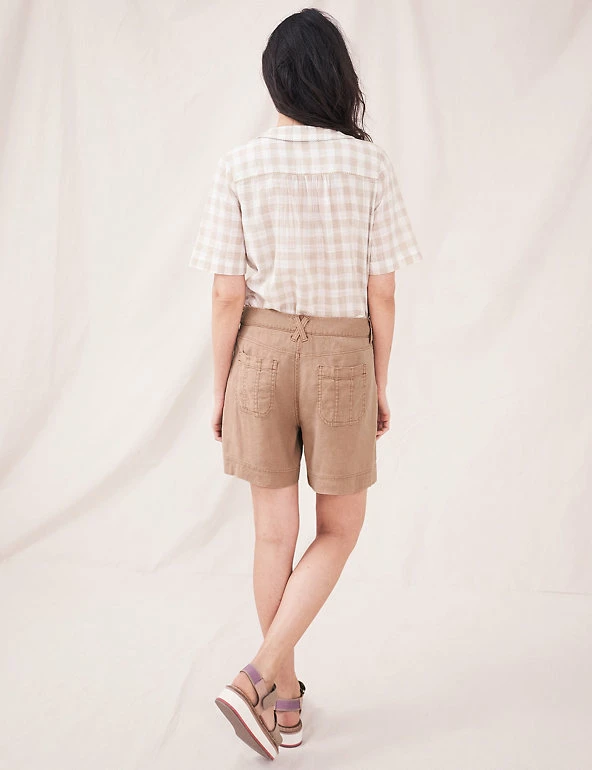 Bring a laid-back utility feel to your summer wardrobe, with these linen-blend shorts from White Stuff. They’re made in an easy mid-rise shape, with a neat button and zip fastening. Patch pockets and button-up tabs give extra detail, along with traditional top-stitched seams.