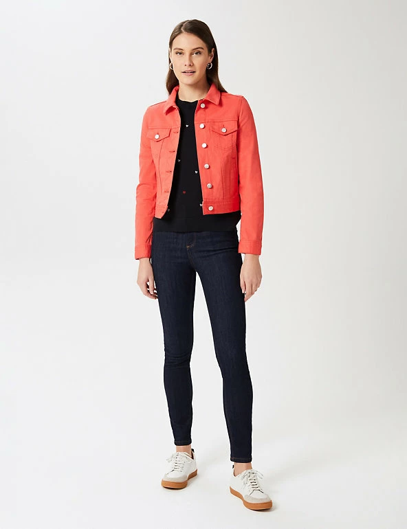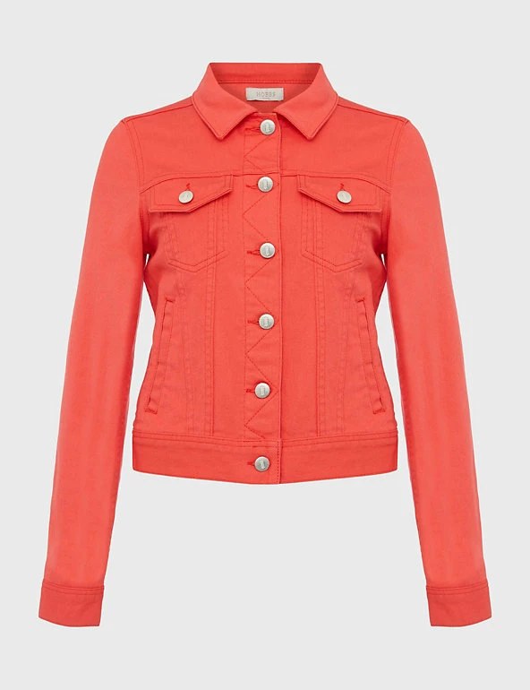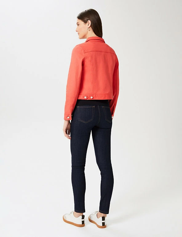 Add a casual note to summery looks with this cropped cotton-rich denim jacket by Hobbs. It’s cut to a regular fit and features traditional details such as seam detailing and metallic rivets. You’ll also spot classic chest pockets and slip pockets to the side. A hint of stretch in the fabric ensures it’s easy to move in. This brand is proud to invest in making cotton production more sustainable.