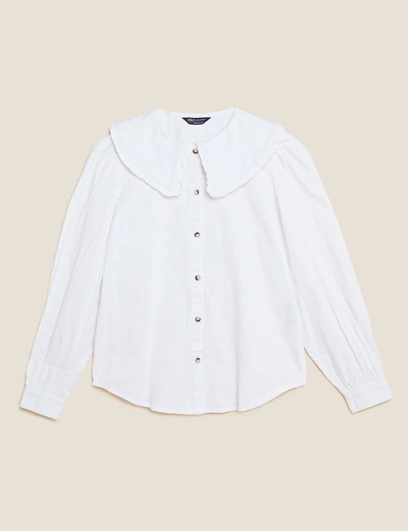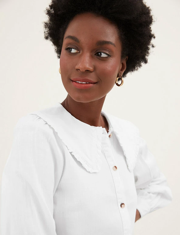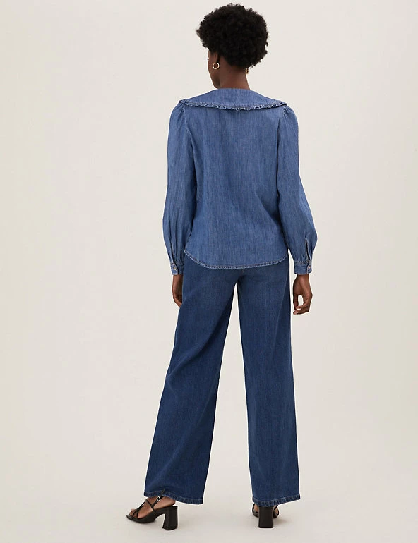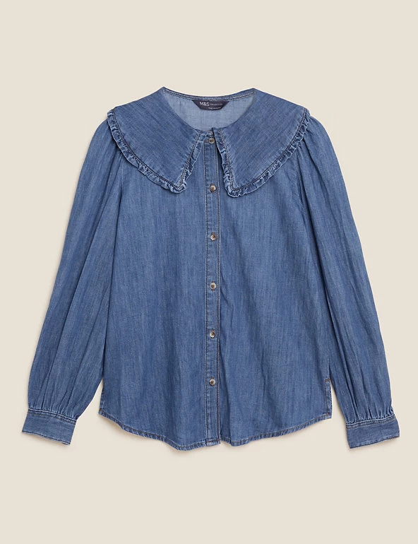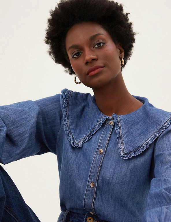 We’ve crafted this blouse from pure cotton denim for a laid-back look. Regular fit, with an oversized frilly collar for a playful flourish. Long sleeves and button-down front for a neat finish. All M&S denim is made with sustainably sourced cotton and less water.