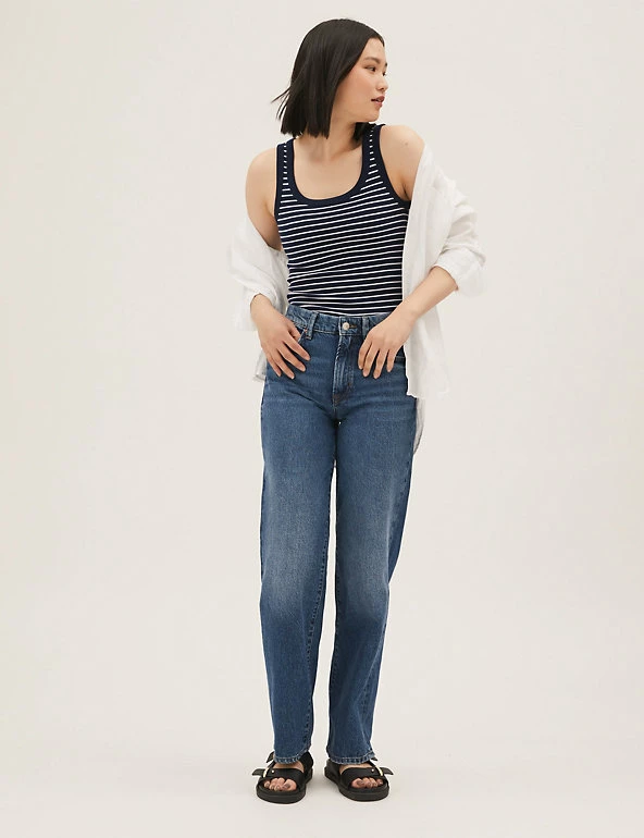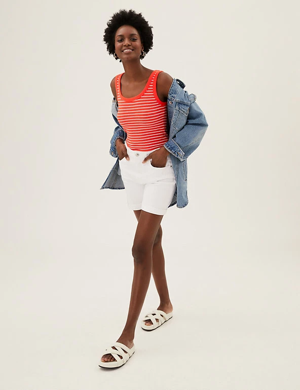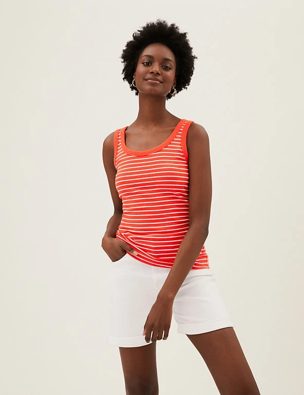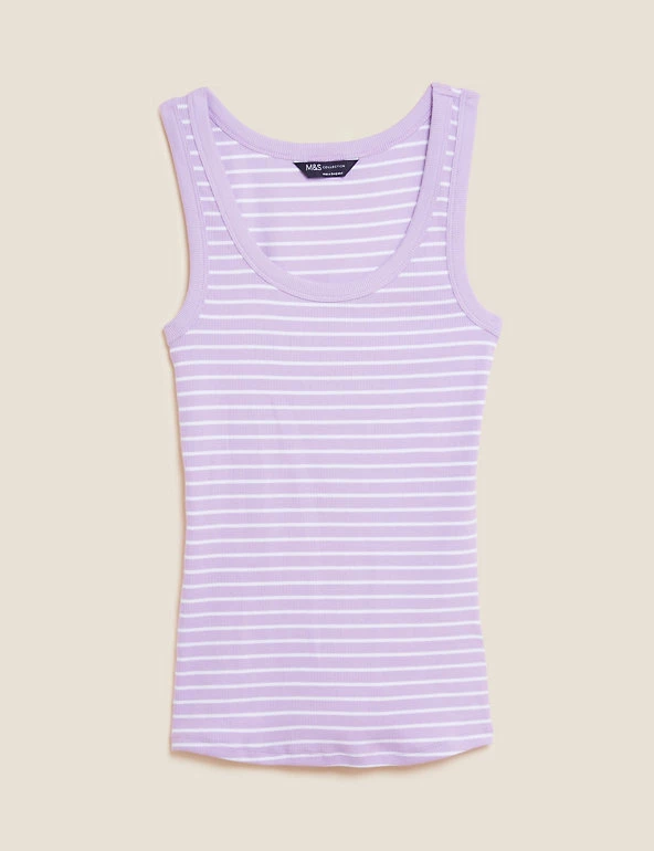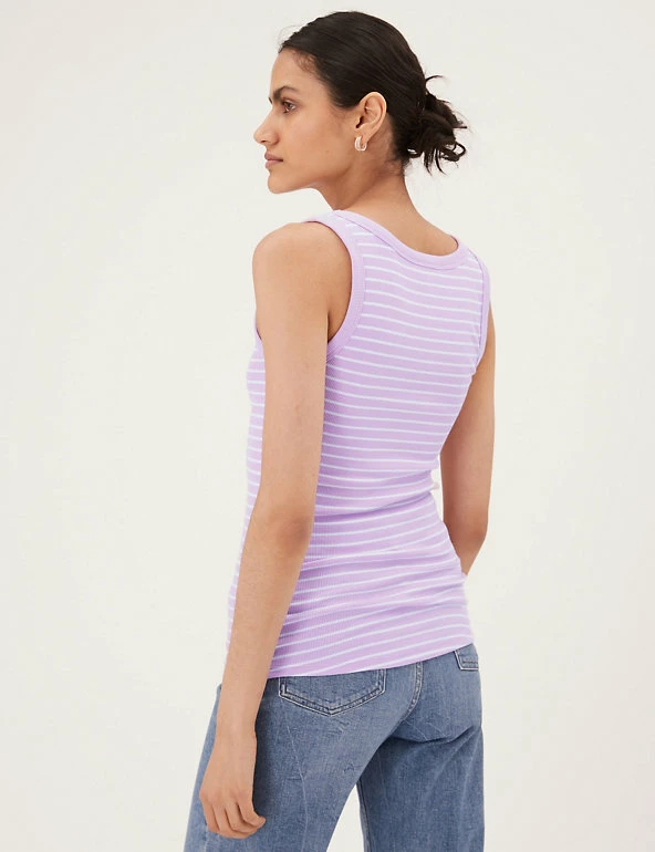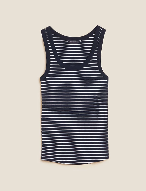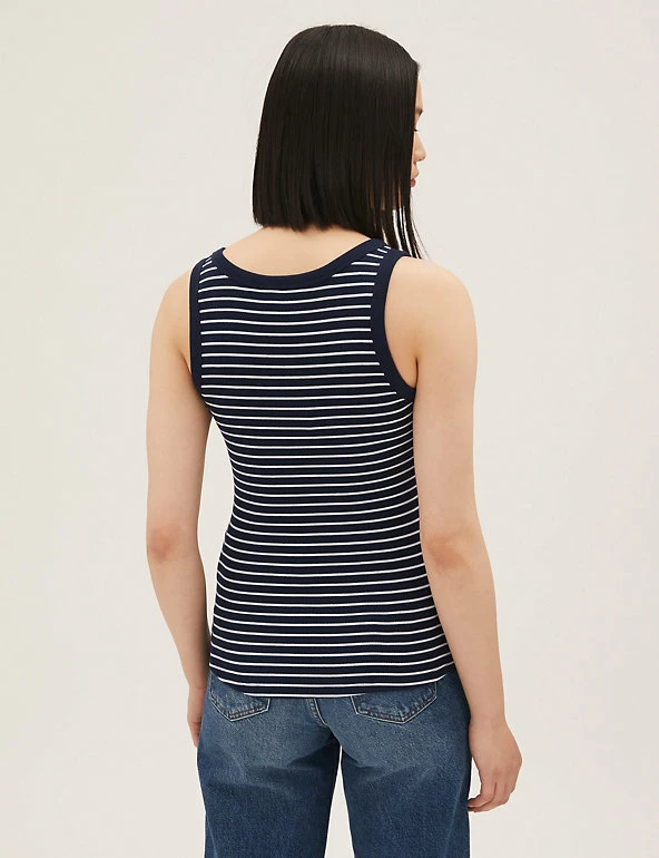 Slim stripes make this cotton-rich vest top ready for the seaside. Fitted style, with added stretch for comfort. We only ever use responsibly sourced cotton for our clothes.