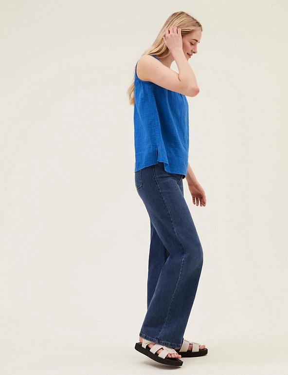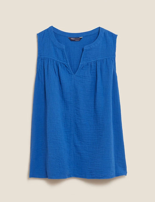 We’ve crafted this vest top from pure cotton for exceptional breathability. Regular fit, with a swinging popover shape for a breezy feel. It’s cut from substantial double cloth fabric that adds texture and an elegant drape. The v-neck and sleeveless style keep it casual. We only ever use responsibly sourced cotton for our clothes.