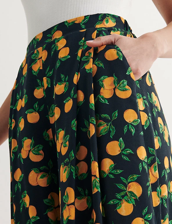 Add some zest to your wardrobe with these orange print culottes from Nobody’s Child. Pleats through the front create a statement wide-leg silhouette. The waist is elasticated at the back for comfort. Plus, there are handy pockets at the sides. Made with sustainably sourced viscose.