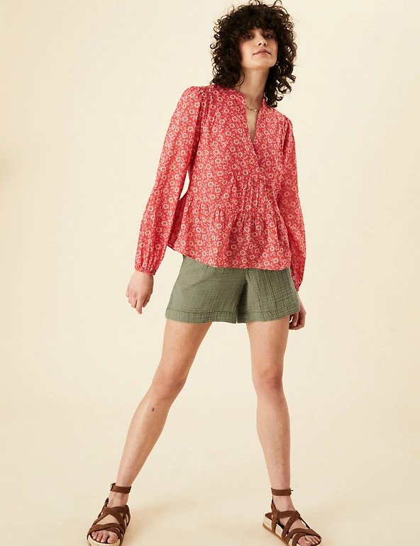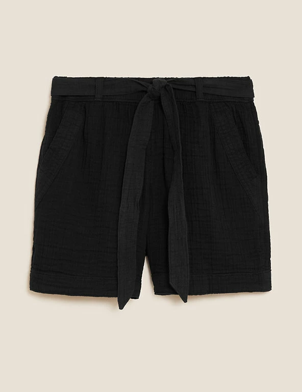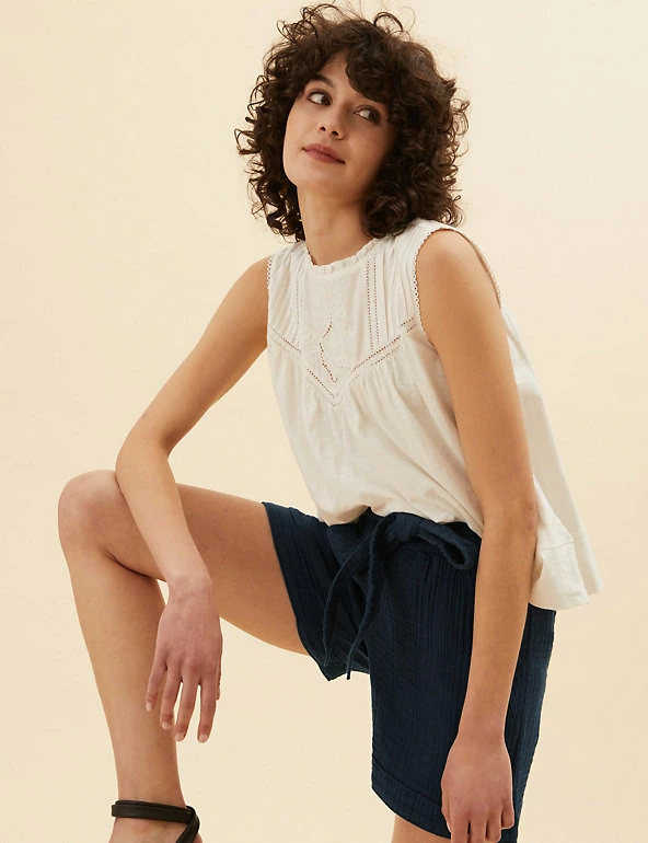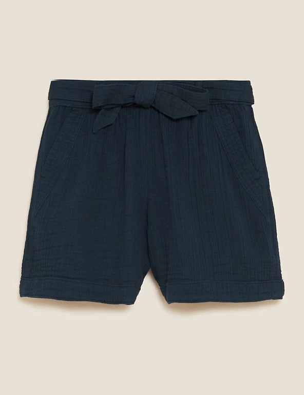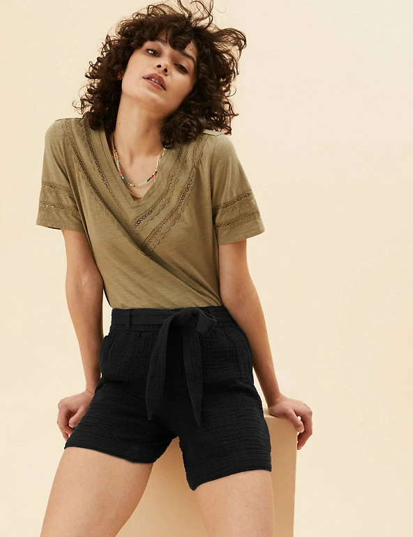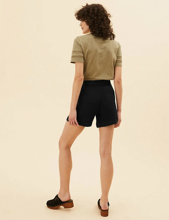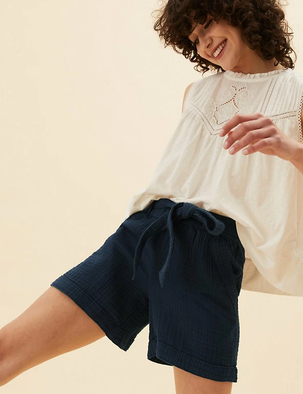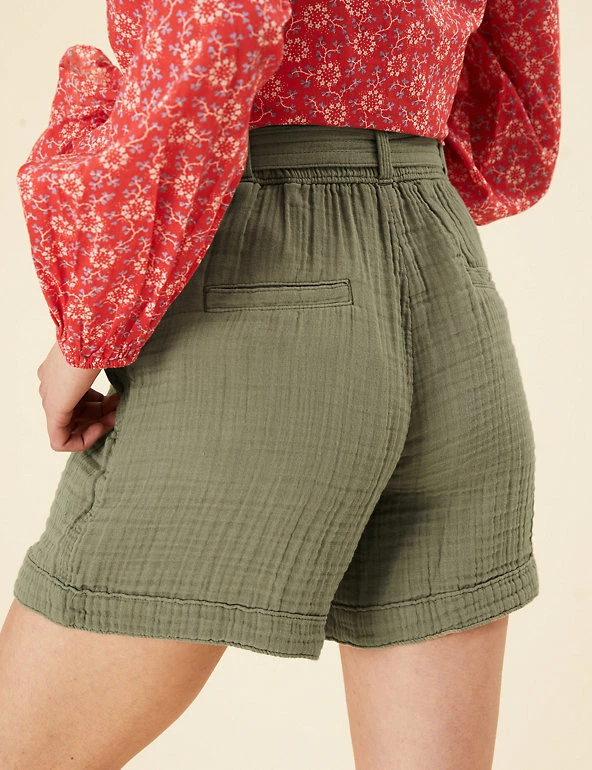 With their breathable pure-cotton fabric, these Per Una casual shorts are primed for sunny days. The effortless pull-on pair have a regular fit, and an elasticated high-rise waist with a zip fly. They’re finished with handy side slip pockets, as well as a detachable belt and drawstring fastening for a feminine flourish. All of the cotton for our clothing is sustainably sourced and always will be. Per Una: stylish designs crafted with carefully considered details and feminine flourishes.