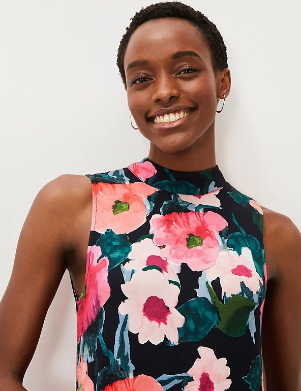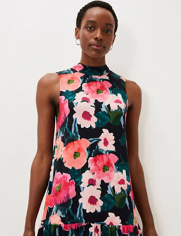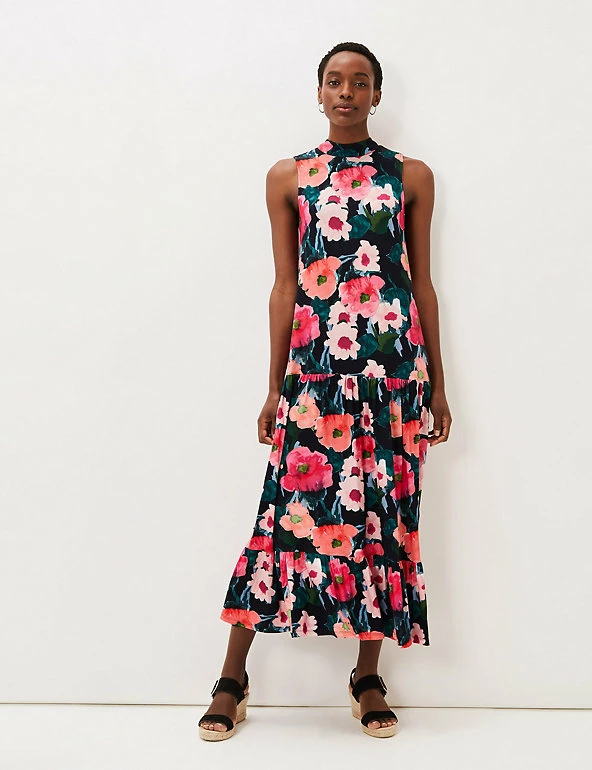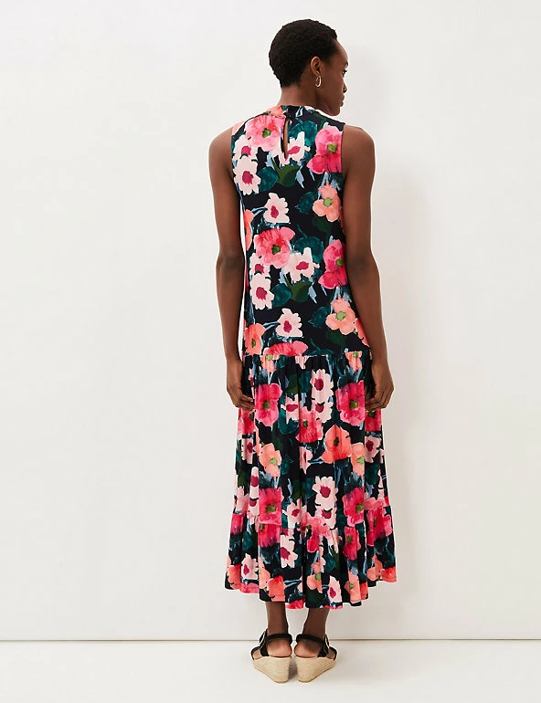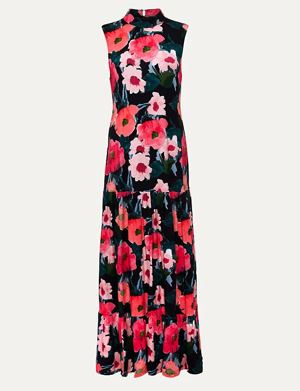 Stand out from the crowd in this dramatic floral-print dress from Phase Eight. It’s cut in a comfortable regular fit, with a flattering sleeveless style and statement high neckline. Below the elegant drop waist, a tiered maxi-length skirt gives fluttery movement.