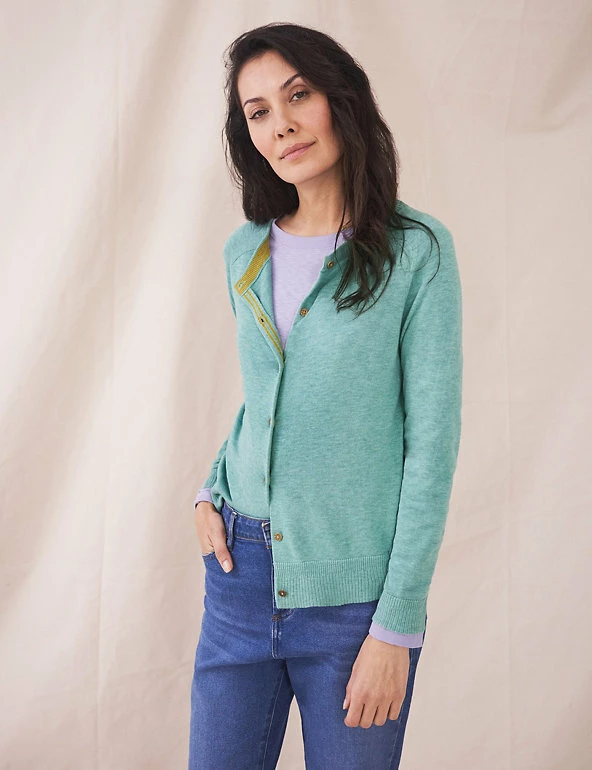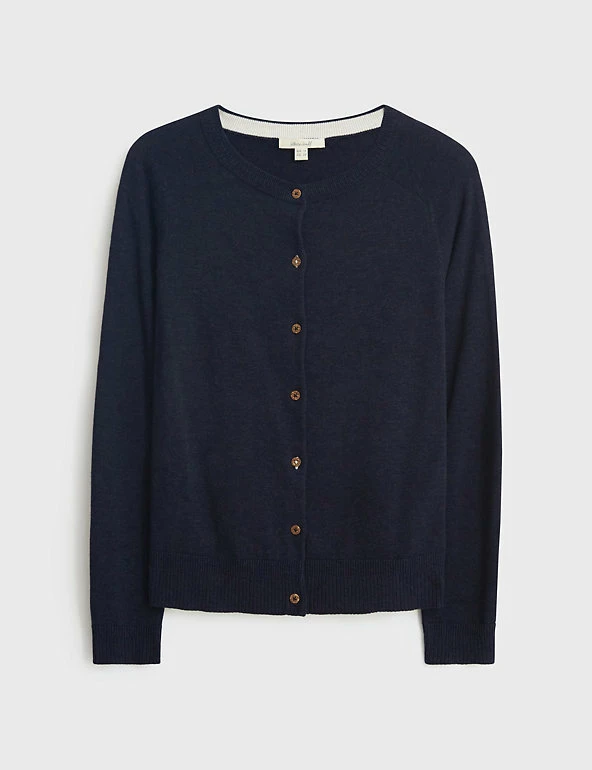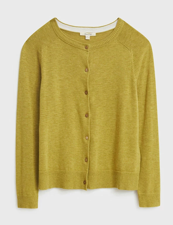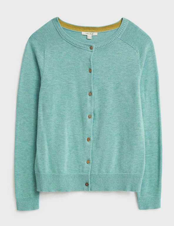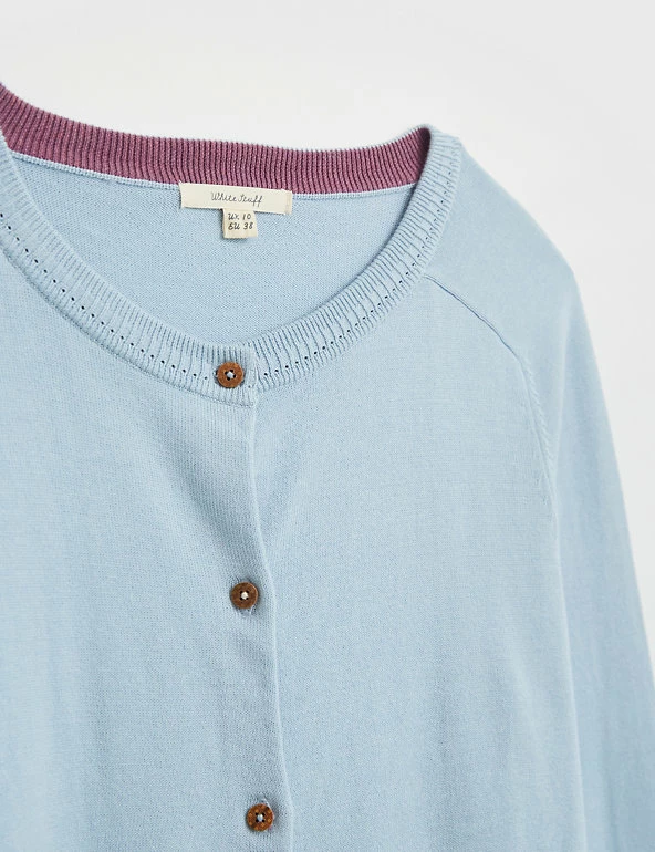 Layer up in style with this pure organic cotton cardigan from White Stuff. Cut to a regular fit, this comfortable crew neck style is designed with ribbed trims for a snug feel and has button fastenings. Made with organic cotton.