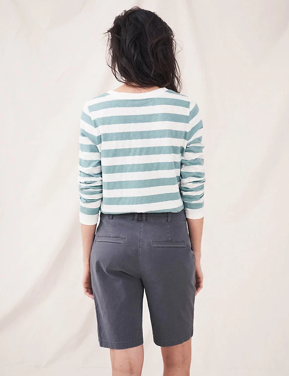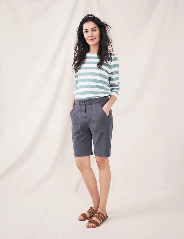 The fabric for these cotton-rich chino shorts is blended with a touch of linen for a cool, soft wear. They’re styled in an easy mid-rise shape, with belt loops plus a button and zip fastening for an authentic look. You’ll find handy pockets at the hips. Made with organic cotton.