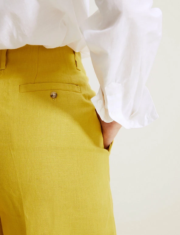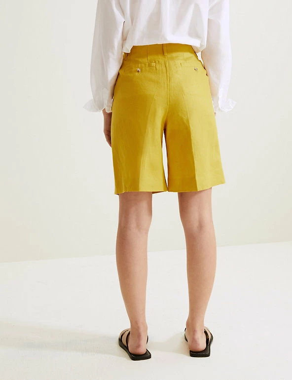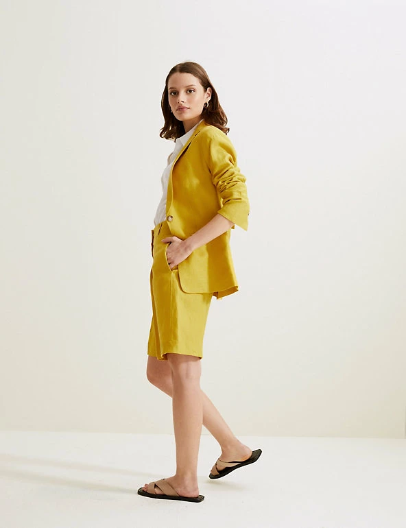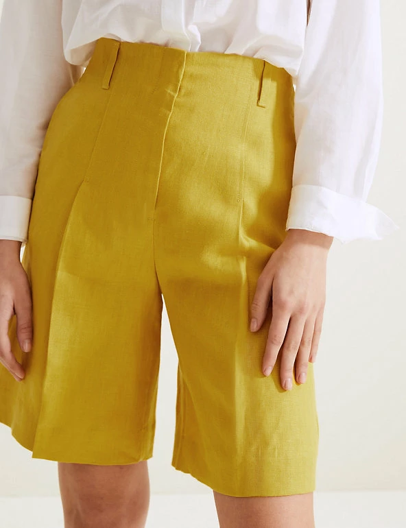 These Autograph shorts are crafted from pure Irish linen, giving them a gentle feel and a beautiful finish. They’re cut in an on-trend high-waisted shape, with a secure hook bar and zip fastening. The pockets at the hips store your essentials, and smart belt loops give added detail.