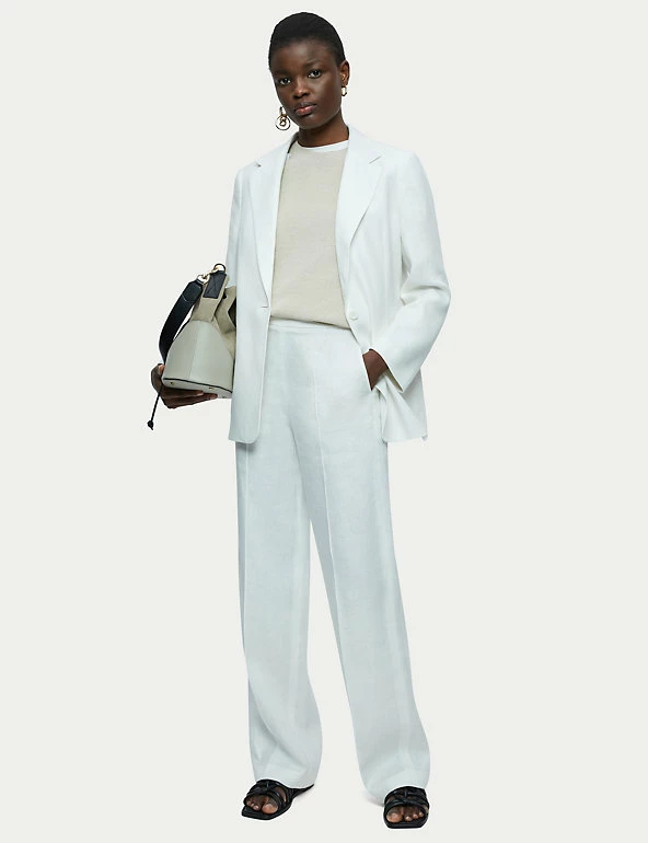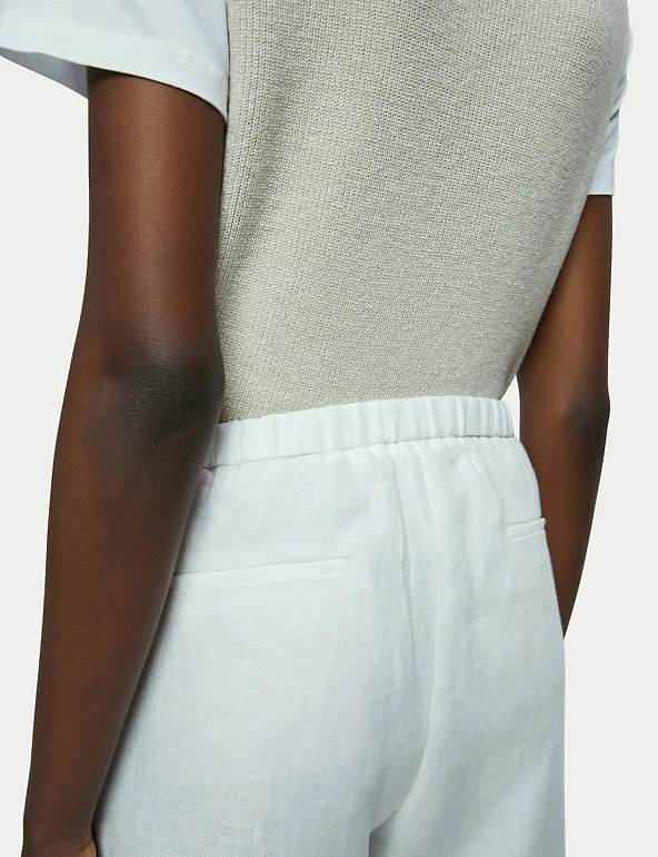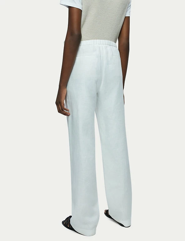 These mid-rise trousers from Jigsaw are crafted from pure linen for light and breezy wear. They combine the classic structure of a straight leg cut with the comfort of an elasticated back. A subtle side zip and front seams add to the tailored feel, and are complemented by neat jetted back pockets.