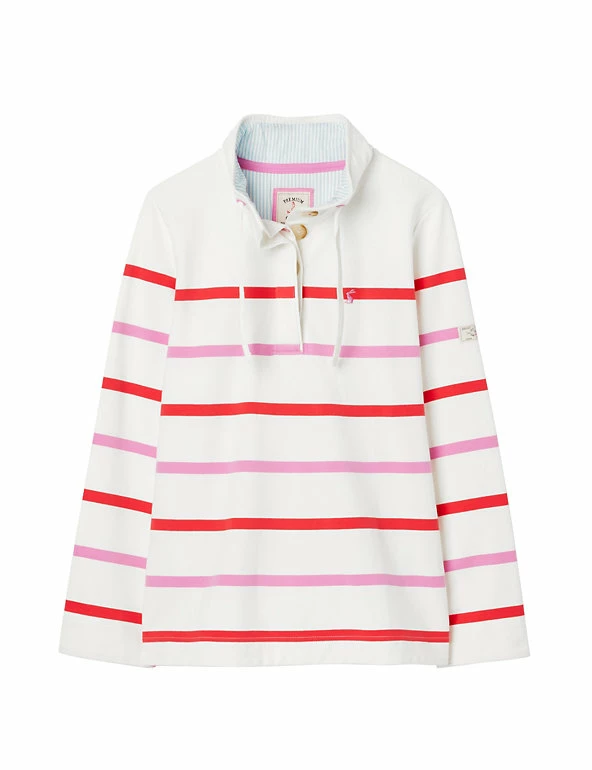Bring a fresh seaside feel to your casualwear with this cotton-rich striped sweatshirt from Joules. It’s cut in a comfy regular fit, with a cosy funnel neckline. Chunky button fastenings at the neck are tucked behind a concealed placket for a neat finish and a drawstring neck tie gives extra protection from draughts.
