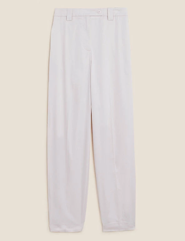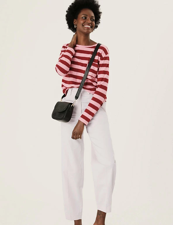 Add a tailored touch to your ensemble with these cotton-rich trousers. They come in a tapered fit with back darts for a flattering shape. Secure button and zip fastening at the high waist. Handy side and back pockets, belt loops for added detail. We only ever use responsibly sourced cotton for our clothes.