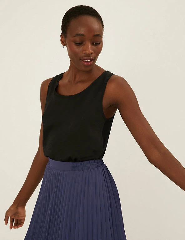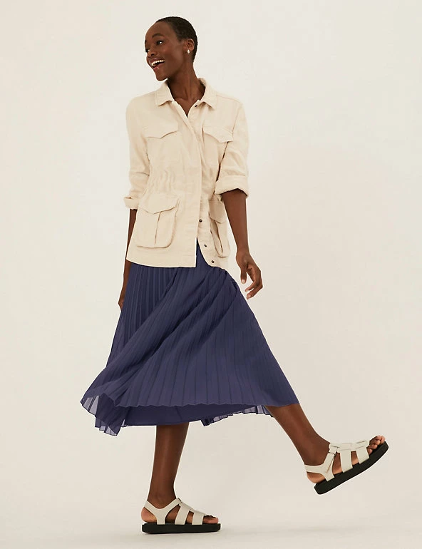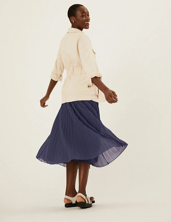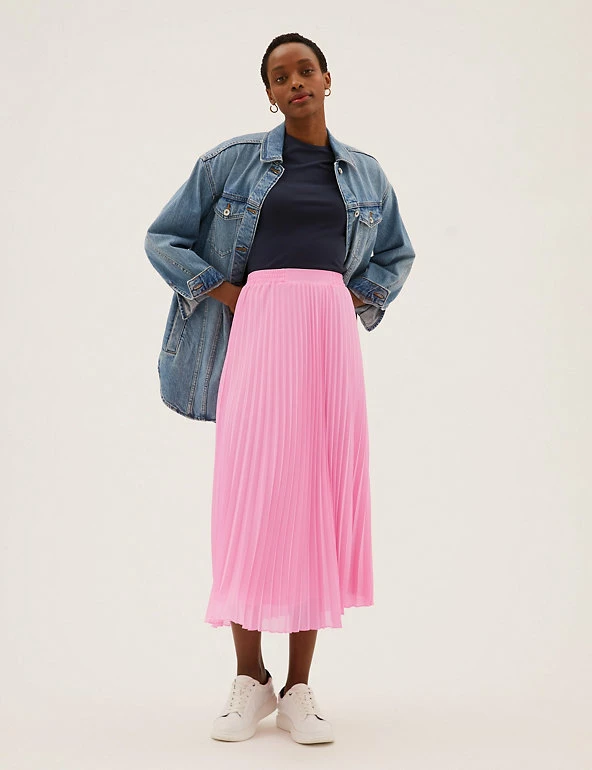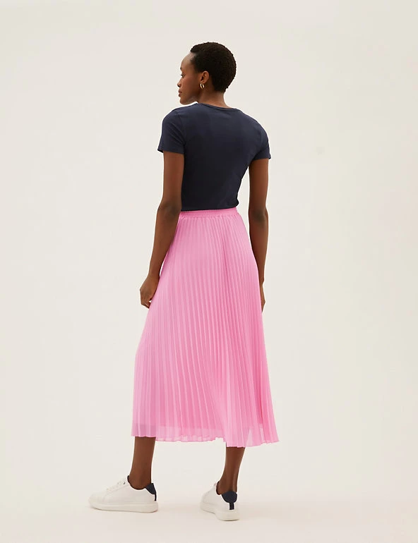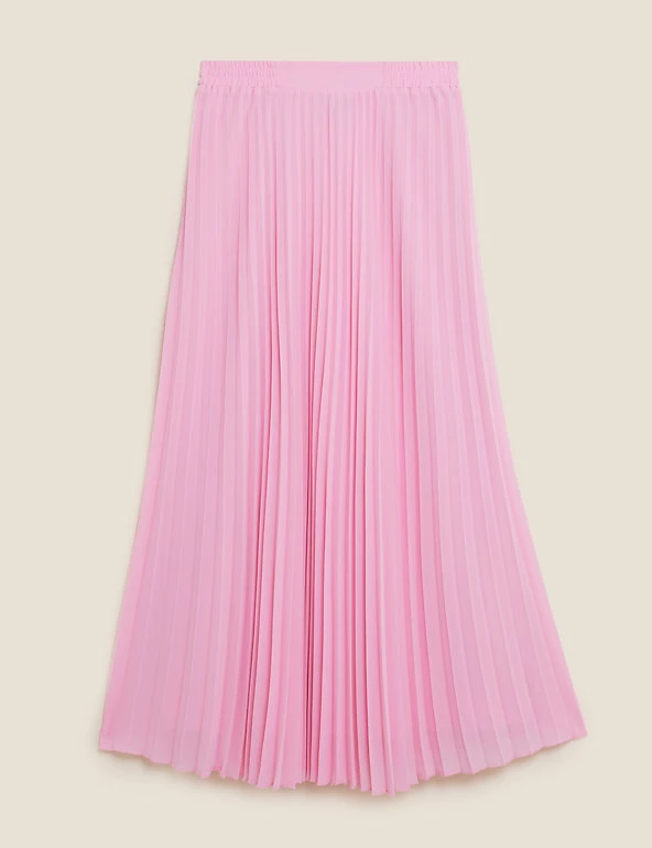 Pull on this classic skirt for an elegant off-duty look. The pleated fabric skims your figure for a flattering silhouette and flows to a chic midaxi length. An elasticated waistband provides that extra bit of comfort.
