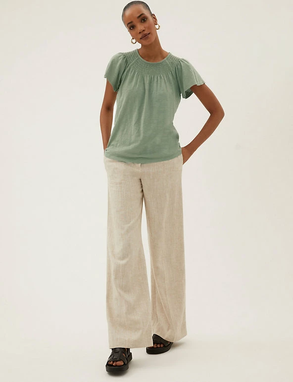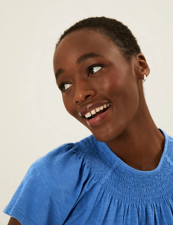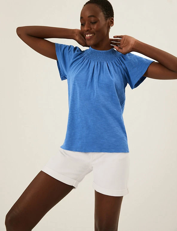 Pull on this pure cotton t-shirt to complete your laid-back look. Regular fit, with a smocked crew neck. Garment washed for an authentic finish. We only ever use responsibly sourced cotton for our clothes.