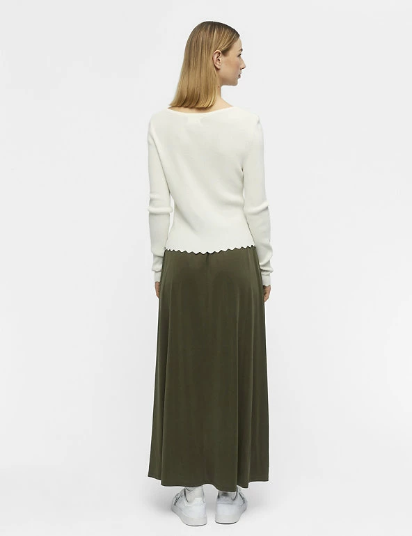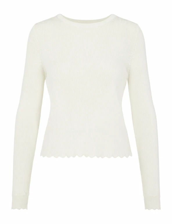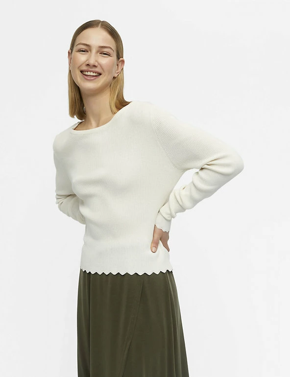 Scalloped edges add a refined twist to this ribbed knit top from OBJECT. It has a flattering regular fit, with a classic round neck and long sleeves. Made with sustainably sourced viscose.