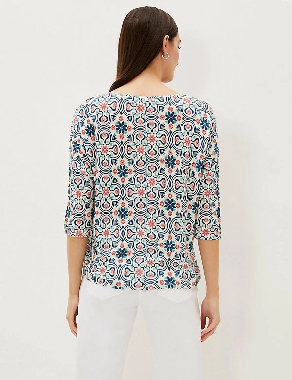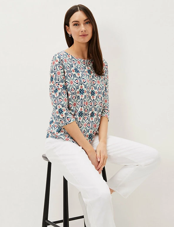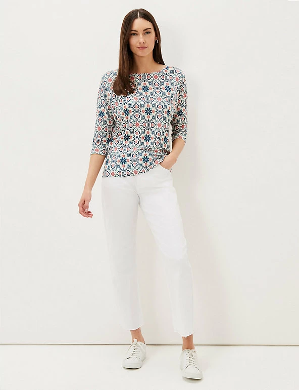 Step out in statement prints with this pure linen floral top by Phase Eight. It’s cut to an easy regular fit, with an elegant round neckline and three-quarter length sleeves. Dropped shoulders finish the look with a laid-back feel.