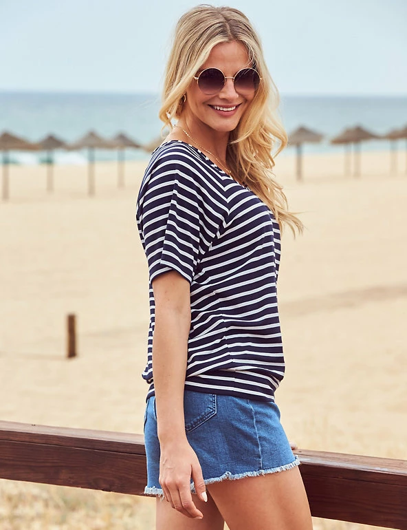Nautical-inspired off-duty style is easy with this striped t-shirt from Sosandar. It’s cut to an effortless relaxed fit and features breezy short sleeves, helping to keep you cool. A scoop neck adds to the laid-back feel.