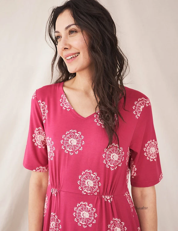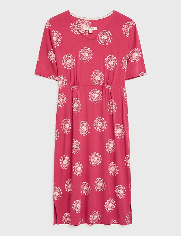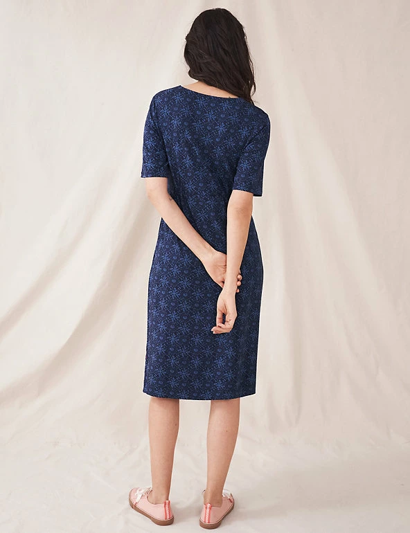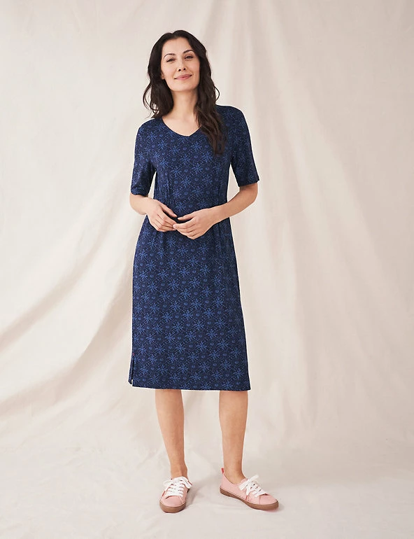 Create a stylish daytime look with this printed dress from White Stuff. The classic shift design is cut to a regular fit for a flattering silhouette. The hem sits at knee length and the dress has short sleeves and a crew neck for an elegant feel. Side pockets add a practical touch. Made with sustainably sourced viscose.