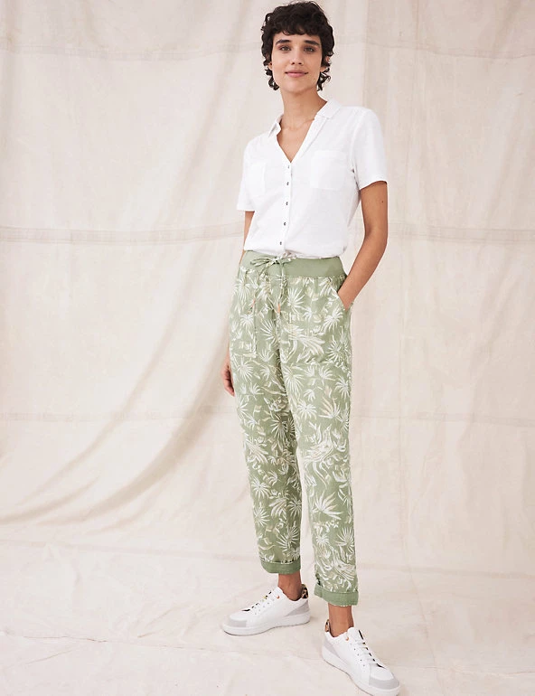 Feel effortlessly cool and stylish on warmer days, in these pure linen trousers from White Stuff. Their slim-fit shape ensures an on-trend outline, and a mid-rise elasticated waist gives effortless comfort. An all-over print of birds and tropical leaves creates a dreamy, summery air. A tie fastening at the waistband, and turn-up cuffs at the hems, add neat extra detail.