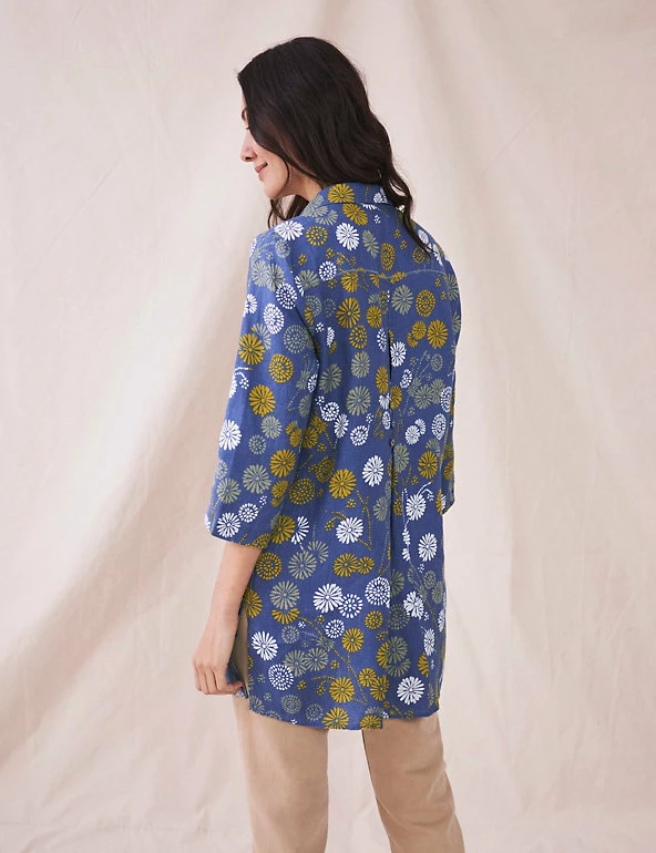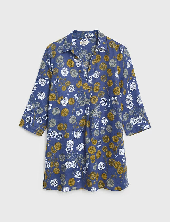 With its dreamy floral motif and pure linen fabric, this White Stuff tunic is a lovely choice for sun-soaked days. Its comfortable regular fit is complemented by a collared v-neckline that gives a touch of smartness. Three-quarter sleeves add a feminine feel.