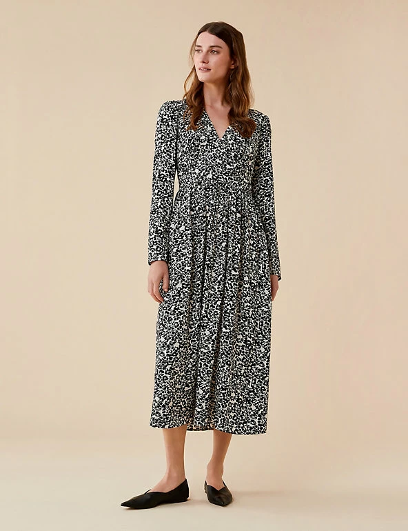 This floral midi dress by Finery London will be your new wear-anywhere piece. It comes in a comfy regular fit, which gently skims the waist before falling into a swishy calf-length skirt. An elegant v-neckline and long sleeves give it smart-casual appeal.