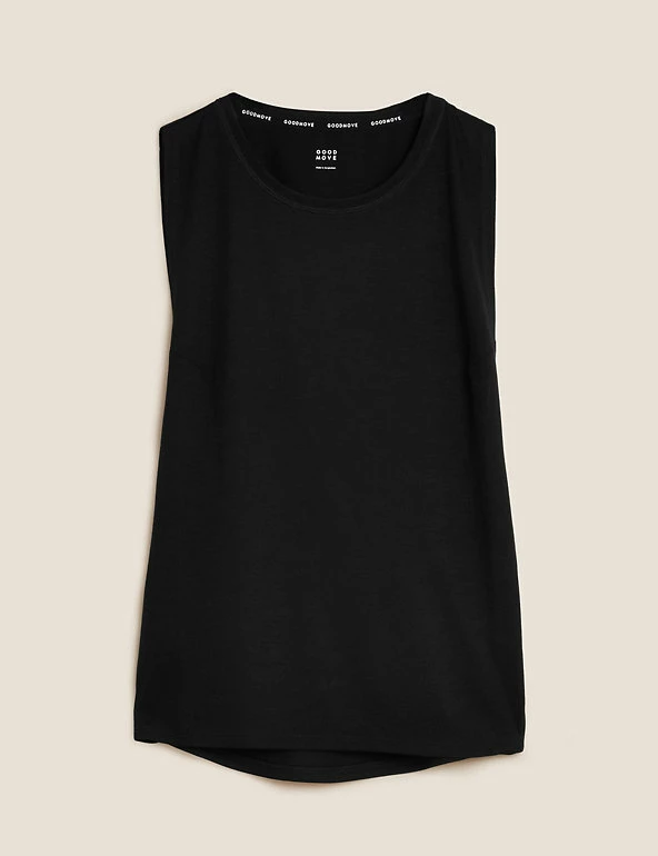 Stay cool as you work out with this vest top from our Goodmove collection. It has a relaxed fit and twisted open sides for a stylish and breezy feel. The smart fabric is breathable, quick-drying and moisture-wicking for comfort throughout your session. Made with recycled polyester.