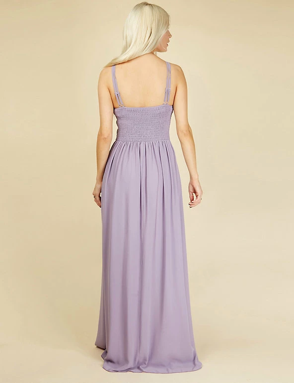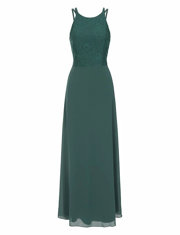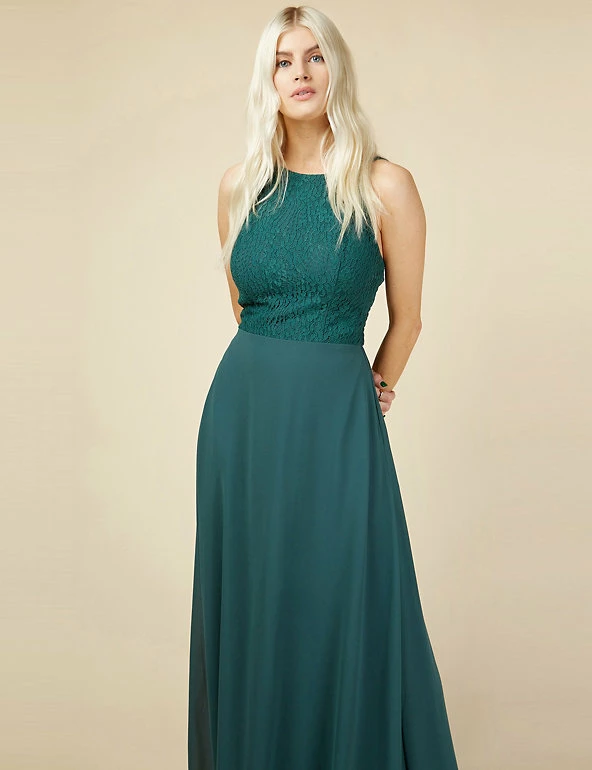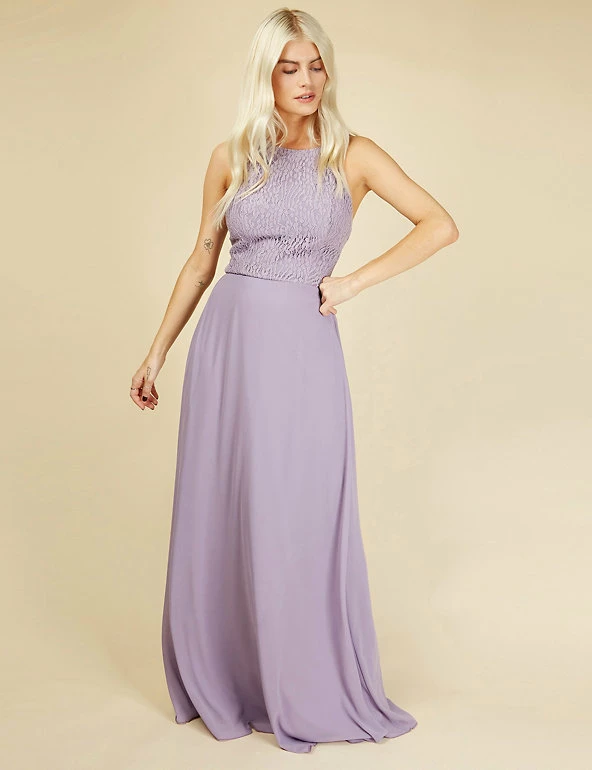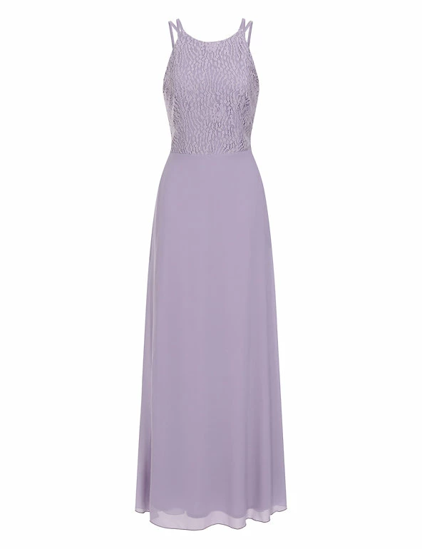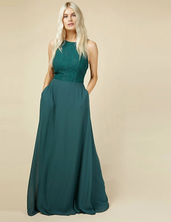 With its delicate detailing and flattering shape, this maxi dress from Little Mistress is perfect for bridesmaid duties or prom night. This sleek style is cut to a flattering regular fit, with a waisted design. It features a beautiful lace bodice for a romantic touch and a classic round neck. The modern double straps are adjustable for the perfect fit. Shirring at the back provides a flexible feel.