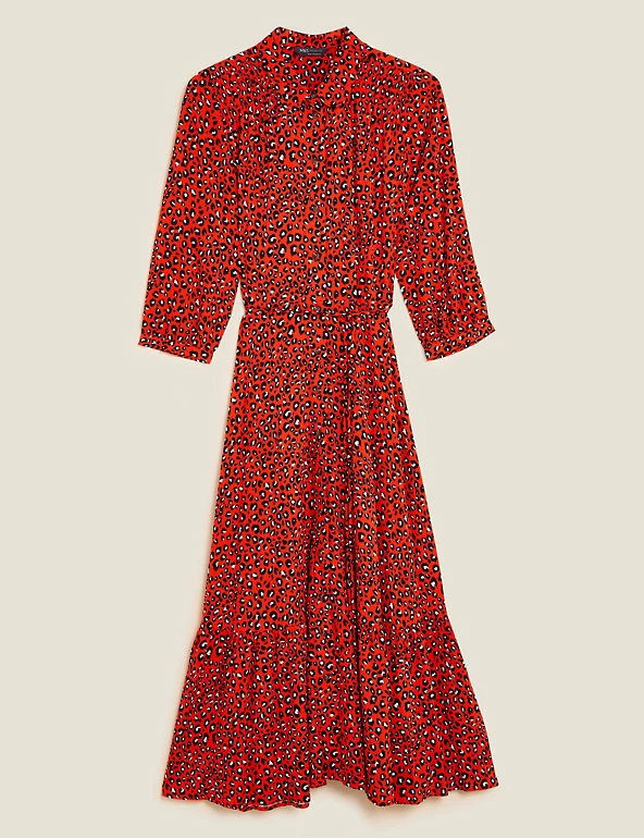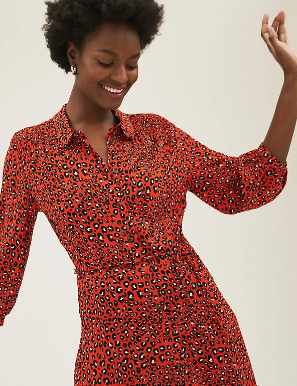 Add a bold design to your wardrobe with this animal print shirt dress. This midi-length piece is cut in a regular fit, with a belt to draw in the waist for a flattering silhouette. Long sleeves create an elegant effect, while a button-through front and neat collar offer a smart finish. Made with sustainably sourced viscose.