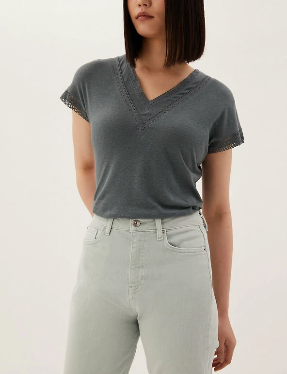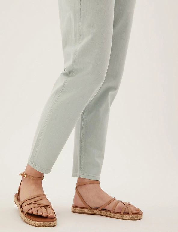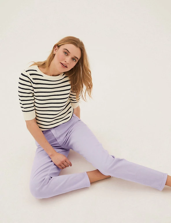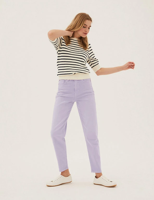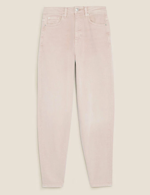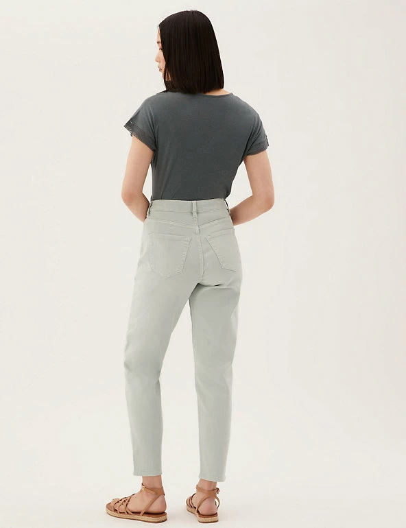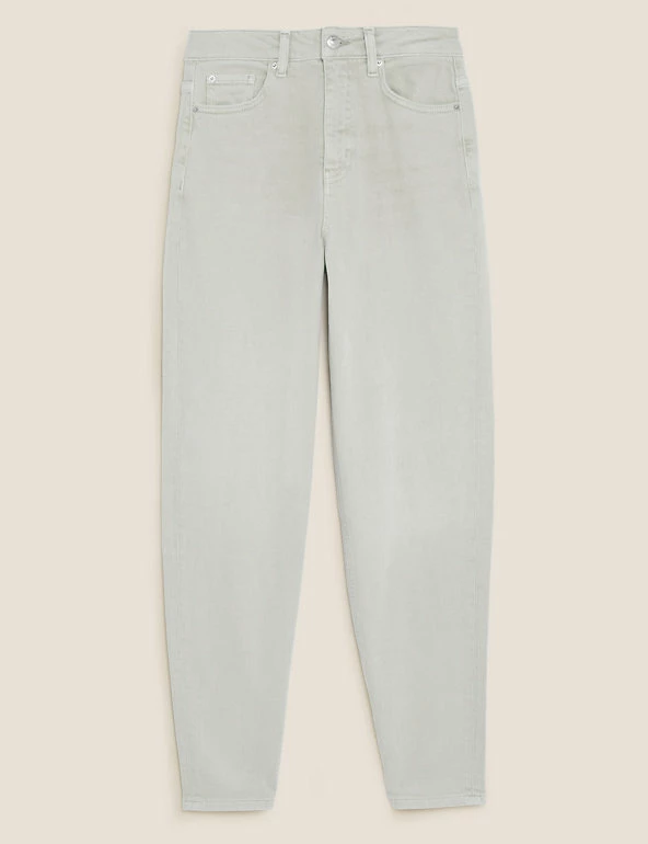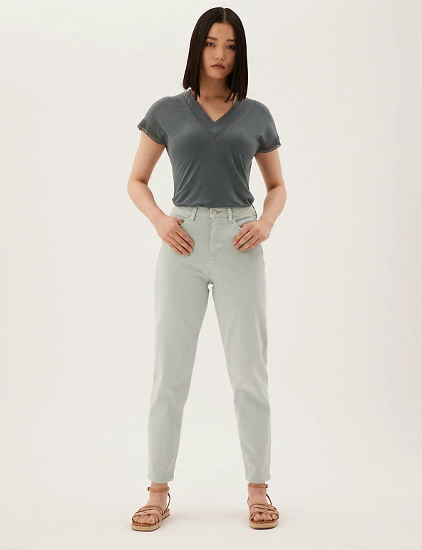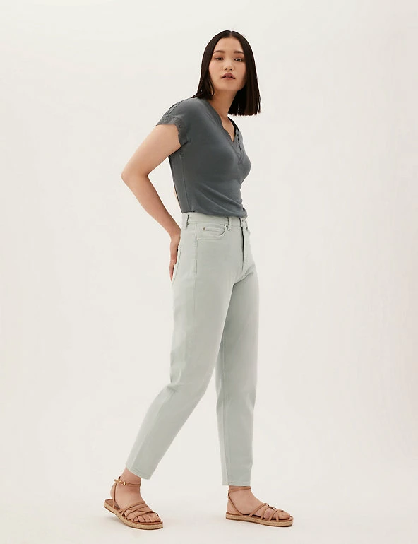 A comfortable day awaits in these high-waisted jeans. They’re cut in a mom fit with added stretch for flattering shaping. The fabric has an authentic vintage wash for a chic finish. All M&S denim is made with sustainably sourced cotton and less water. Made with organic cotton.
