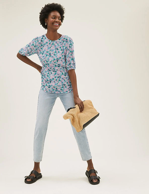 No wardrobe is complete without a playful floral top. We’ve designed this one in a regular fit with a flattering empire waist and voluminous puff sleeves. Made with sustainably sourced viscose.