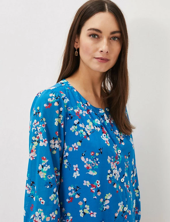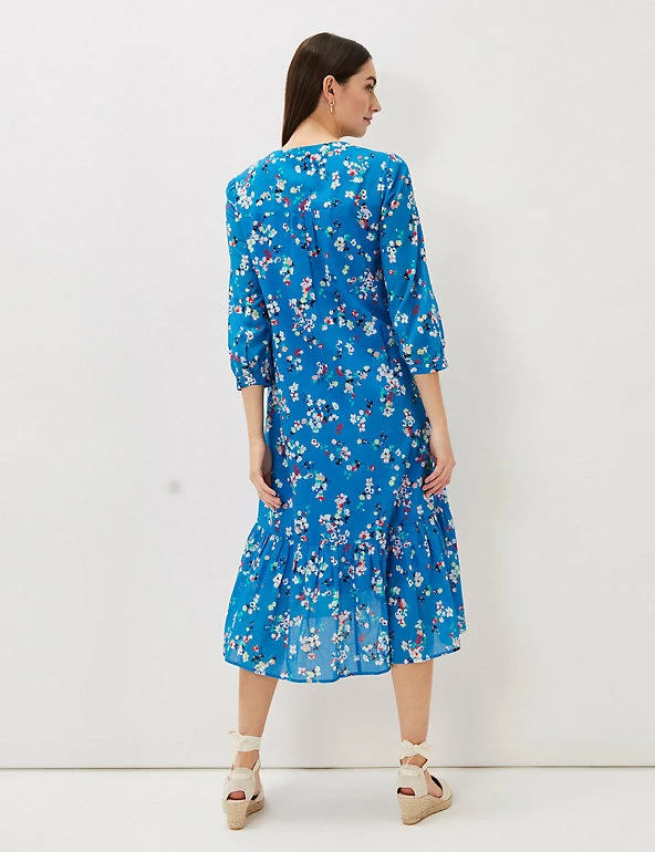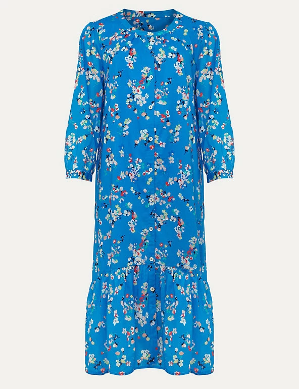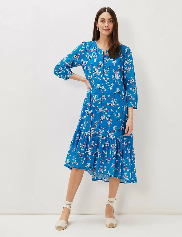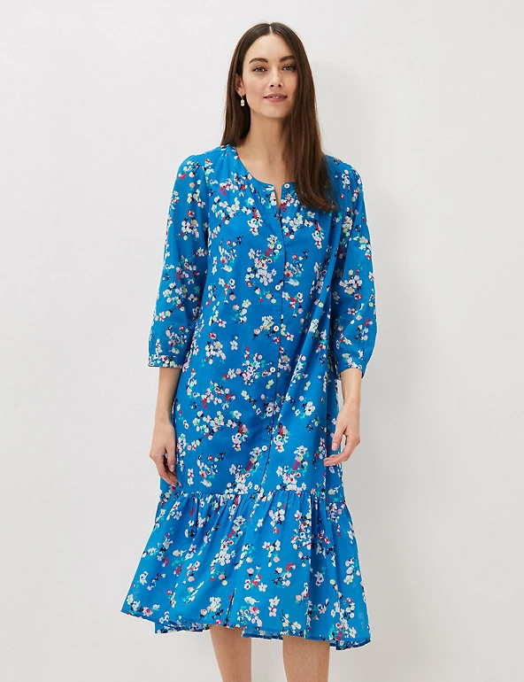 This pure cotton shirt dress from Phase Eight has a bold floral print for a standout look. It’s cut in a comfortable regular fit, with an easy round neckline and feminine three-quarter sleeves. At the midi length hemline, a deep tiered frill adds fluttery movement. The dress fastens with buttons down the front and is fully lined for comfort.