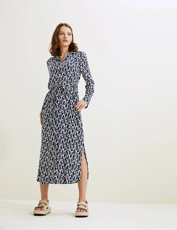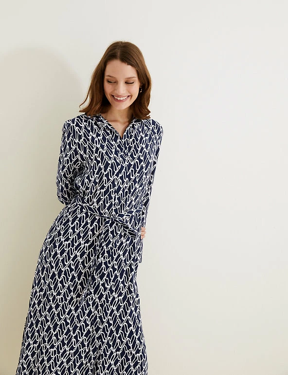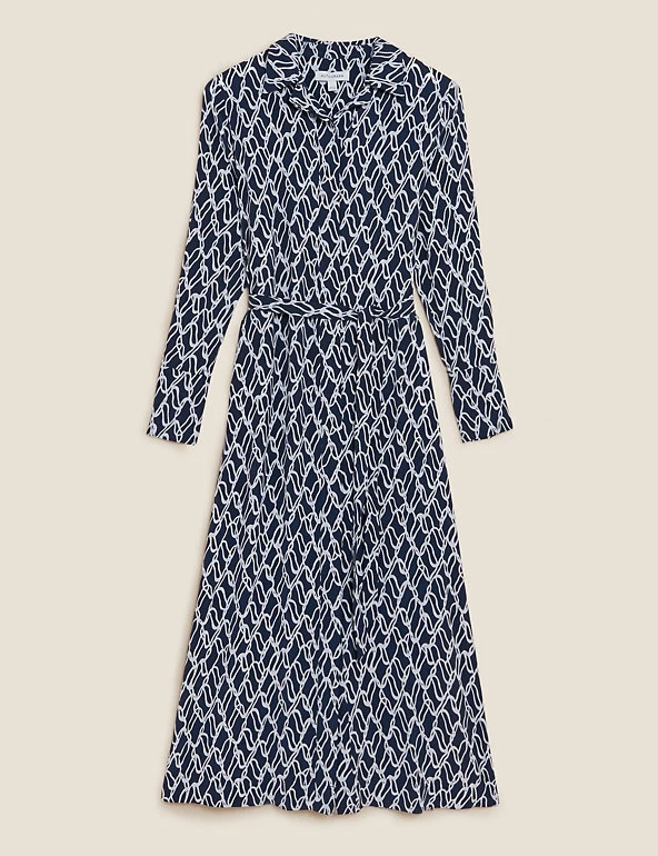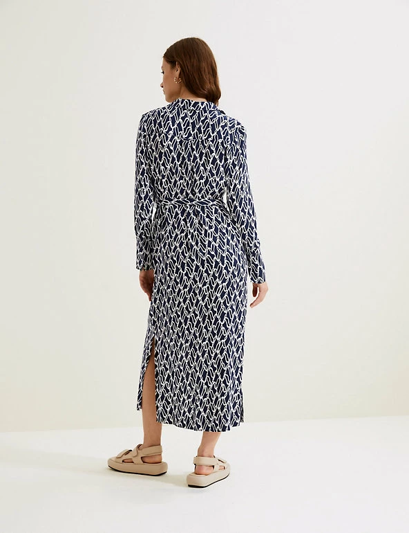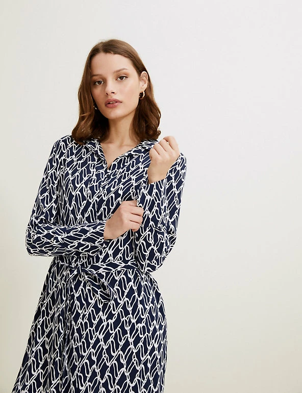 With its classic shirt silhouette and bold chain print, this Autograph dress is smart and stylish in equal parts. It’s cut in a regular fit, with a detachable belt for optional shaping. A collared neckline, deep cuffs and concealed button placket lend a tailored touch. The soft, flowing cupro fabric and midaxi length create a drapey finish. Autograph: premium investment pieces featuring contemporary cuts and refined finishing touches.